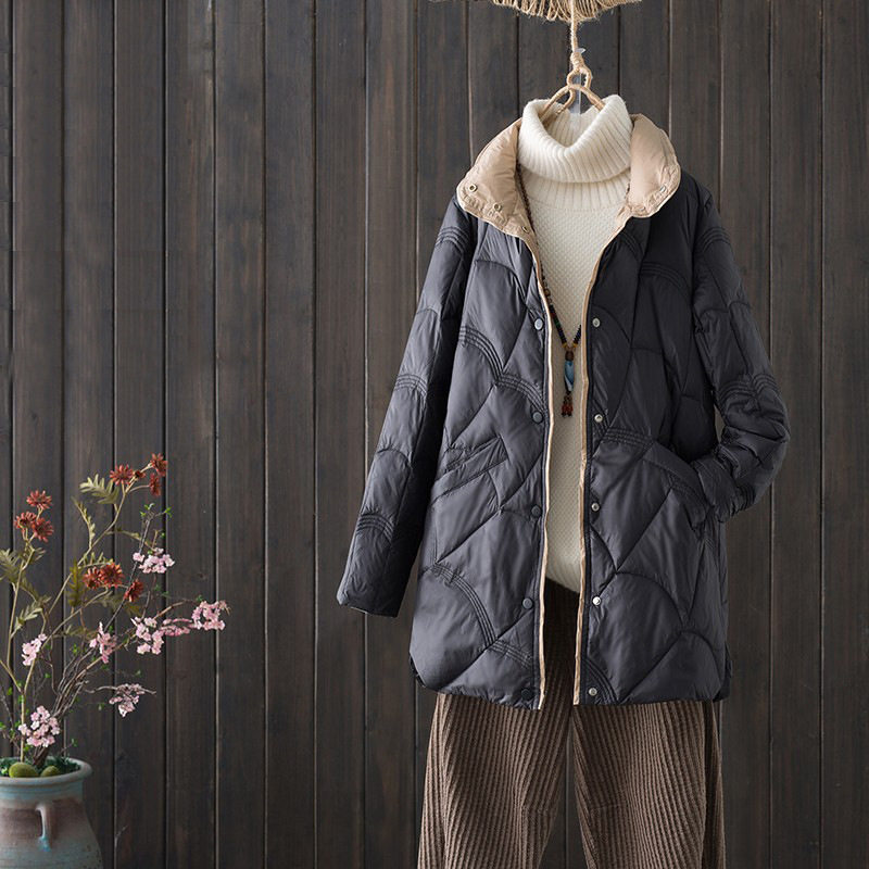 鸭绒立领中长羽绒服轻薄