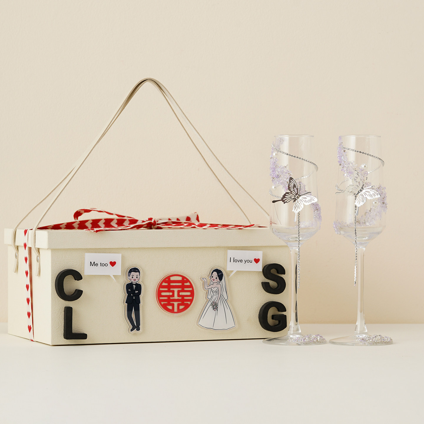 #仲夏婚礼 #森系婚礼DIY #敬酒杯香槟杯 #新婚礼物 #新人新娘礼物盒