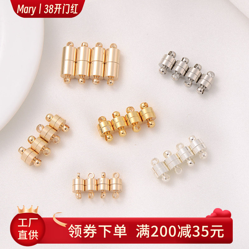 📚 14K铜包金保色圆形磁铁扣手工diy手链收尾连接口铜包银项链吸铁扣