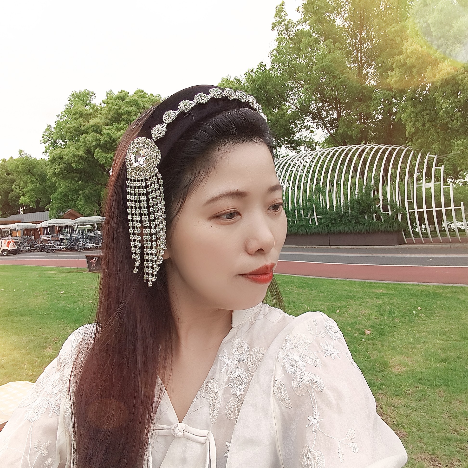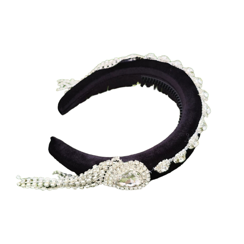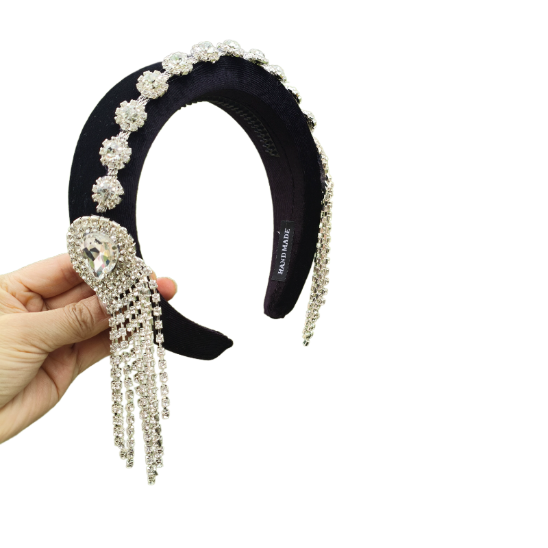 📚 原创国风银色水滴流苏发箍女高颅顶带齿发卡宽版名媛镶钻头箍奢华
