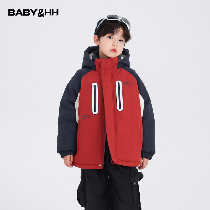 📚 男童冬季红色新年冲锋衣羽绒服2026新款儿童男孩撞色加厚防寒外套