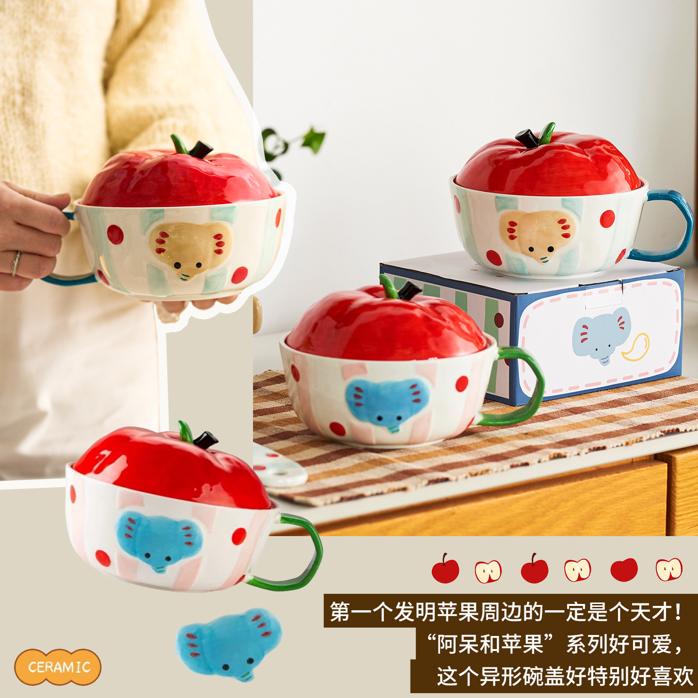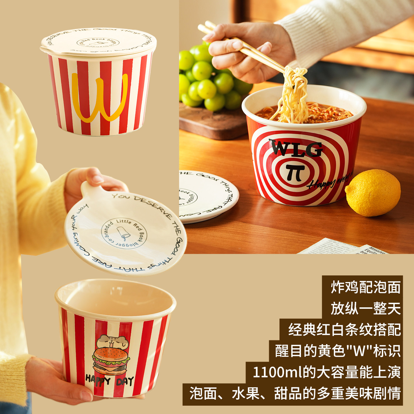 📚 肆月泡面碗带盖可爱大容量宿舍用学生吃面碗2026新款汤碗陶瓷大碗