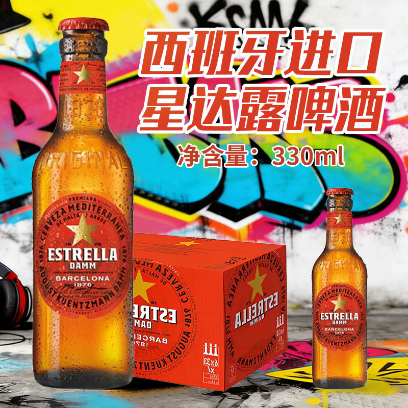 📚 西班牙原瓶进口星达露330ml*24瓶地中海式拉格黄啤酒ESTRELLA整箱