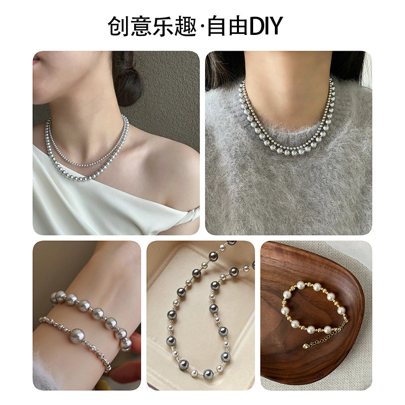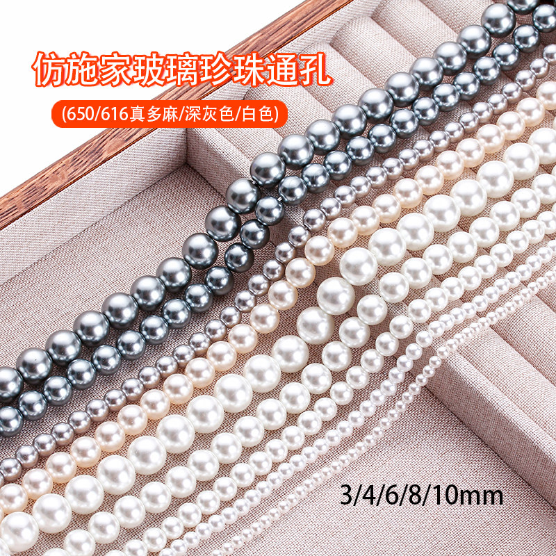 📚 仿施家珍珠白色650玻璃直通孔珠子半成品圆珠散珠diy手链项链配件