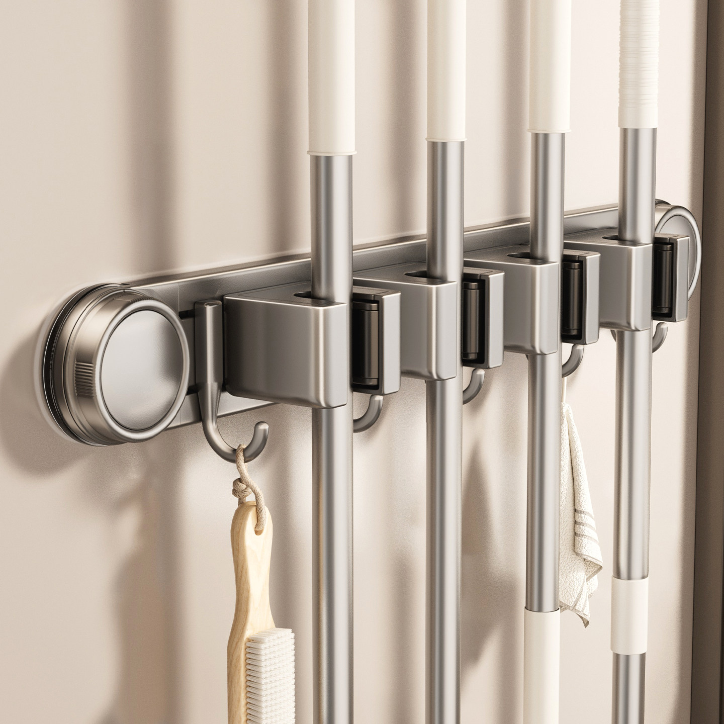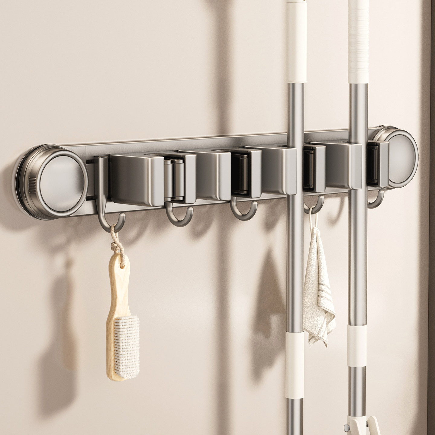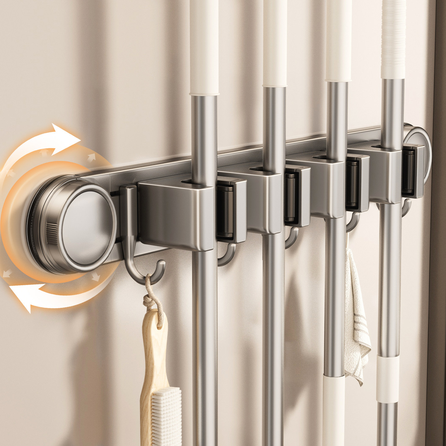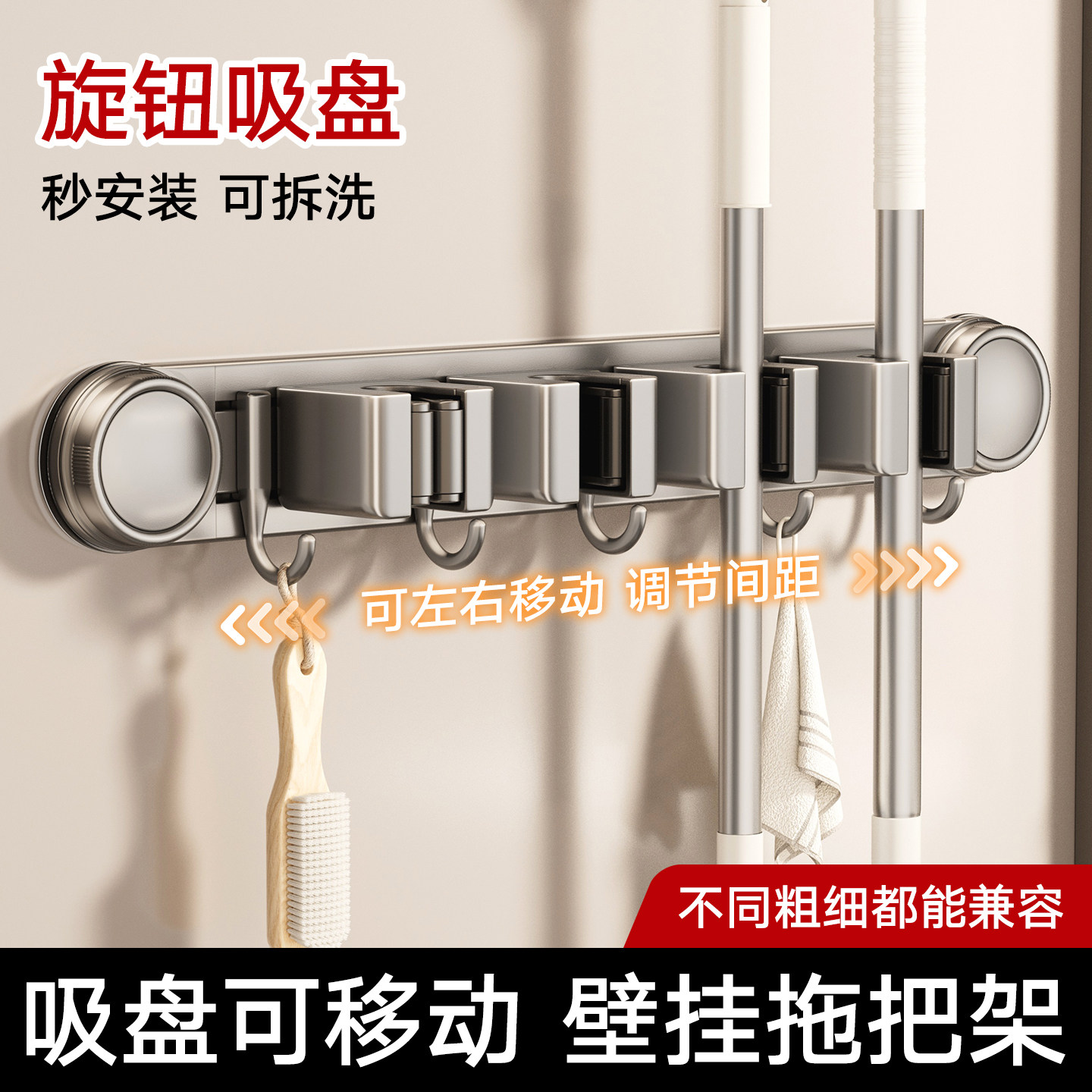 📚 吸盘拖把壁挂夹免打孔卫生间阳台挂钩抹布扫把墙壁固定架收纳架子