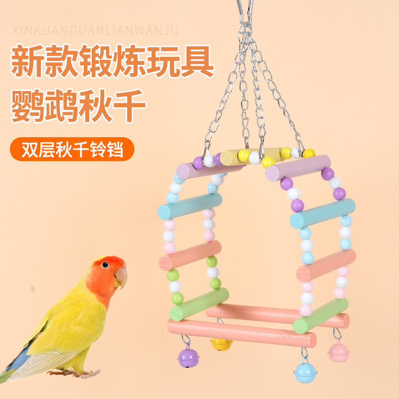 📚 鹦鹉玩具秋千吊桥解闷自嗨大全啃咬解压套装训练磨爪马卡龙彩虹桥