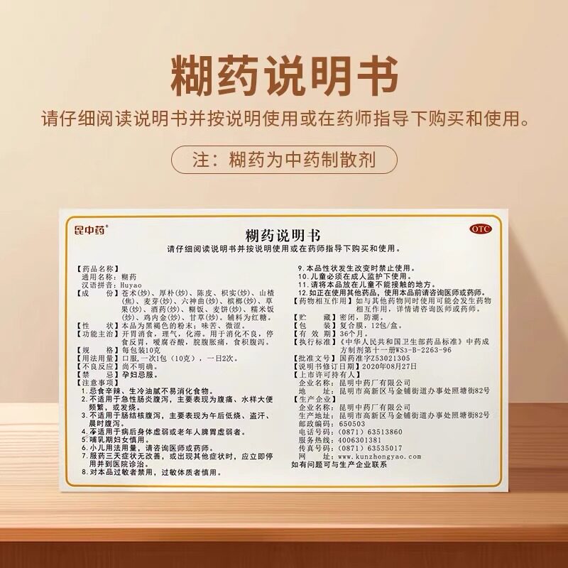 📚 昆中药 糊药 10g*12包/盒开胃消食理气化滞反胃消化不良食积腹泻