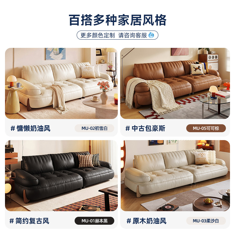 📚 政府补贴帕沙曼真皮沙发客厅头层牛皮奶油风沙发小户型直排小喵兽