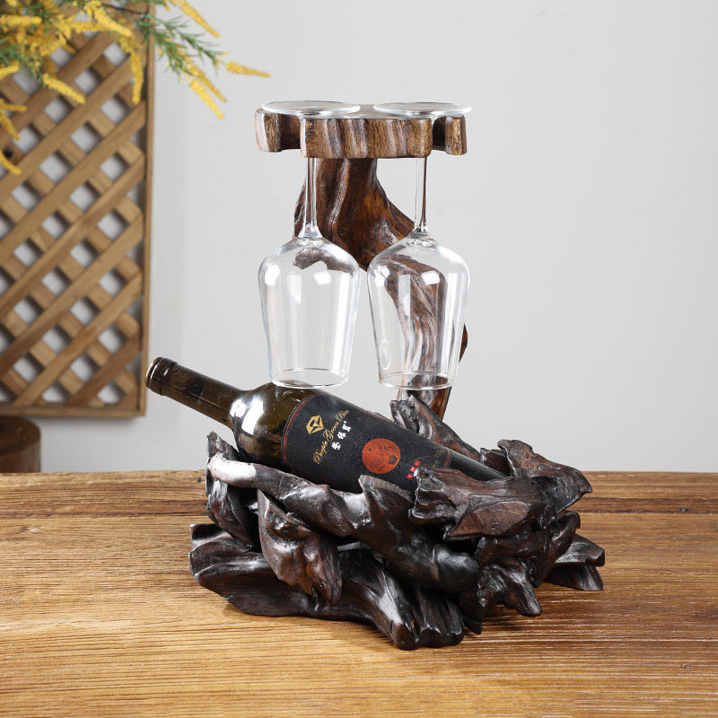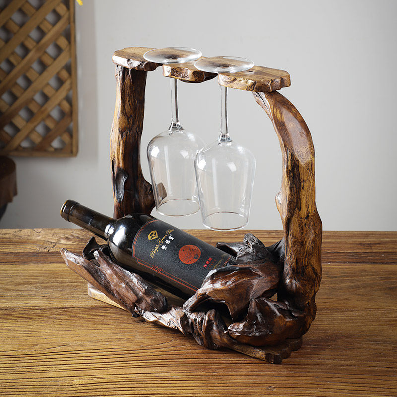 📚 泰国实木复古红酒架摆件创意斜放酒架酒柜展示架子置物架杯架倒挂