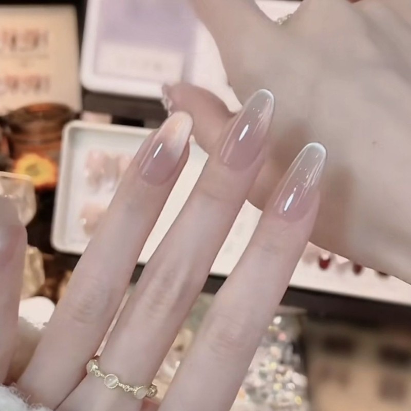 📚 纯欲感追光猫眼美甲爆闪腮红渐变玻璃珠穿戴甲可拆卸10片装无钻