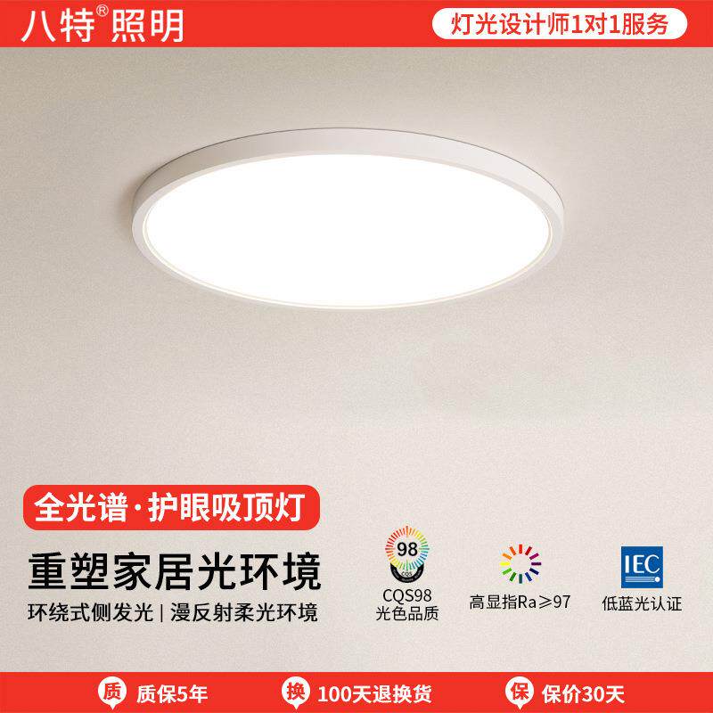 📚 八特照明LED护眼吸顶灯超薄圆形卧室灯儿童书房间阳台全光谱灯具