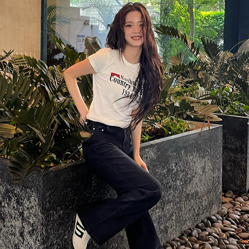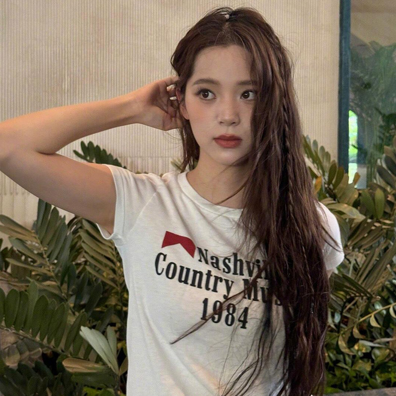 📚 BM短袖t恤女欧阳娜娜同款美式1984字母短袖T恤女纯棉正肩bm上衣女