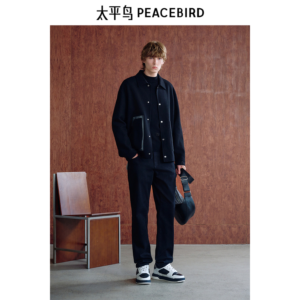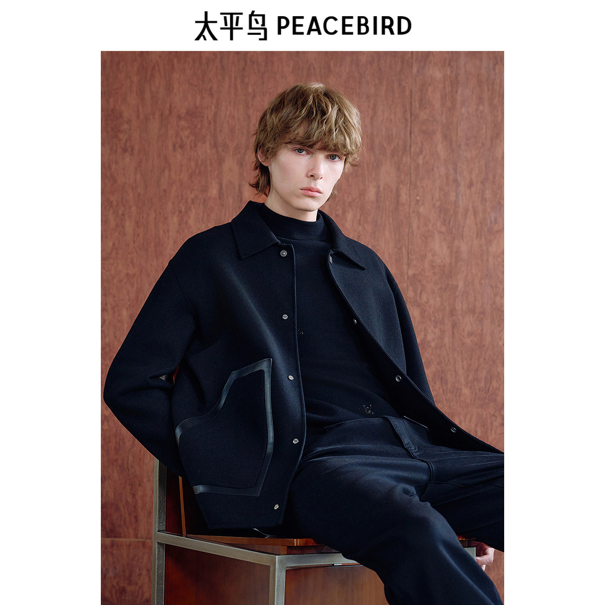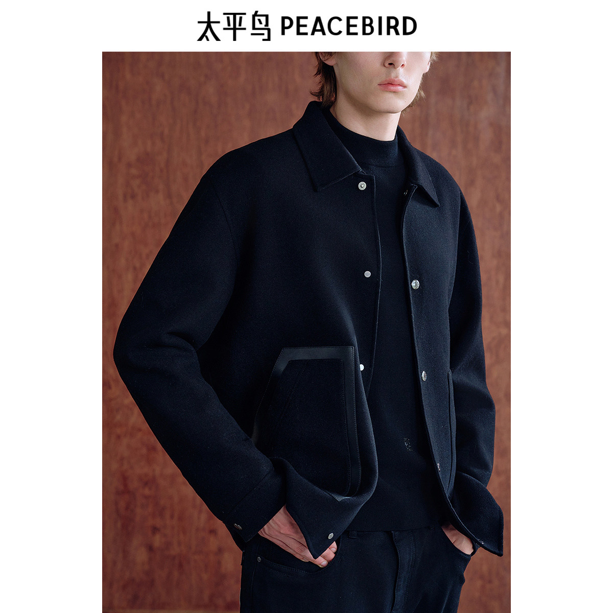 📚 【商场同款】太平鸟男装 2024年冬季黑色羊毛呢夹克B1BCE4211