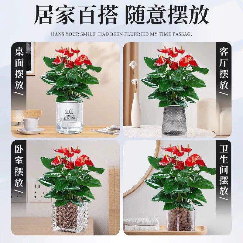 📚 水培红掌盆栽带花一帆风顺白掌四季绿植室内好养懒人适合养的花卉