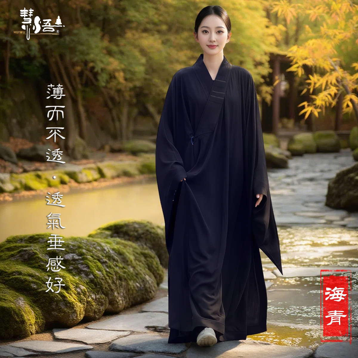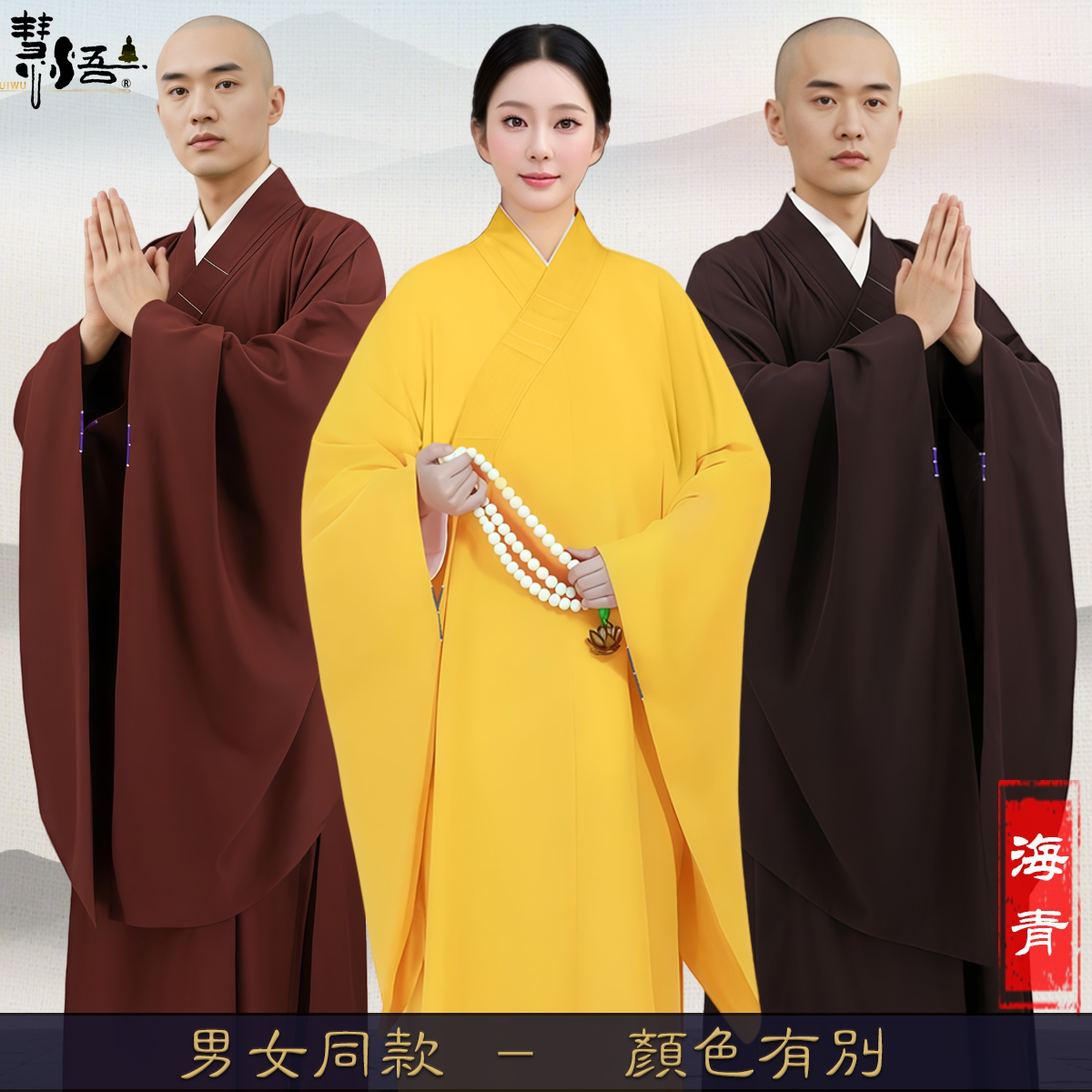 📚 慧悟僧服海青女居士服男和尚服大褂台湾麻纱四季款不透明禅修海清