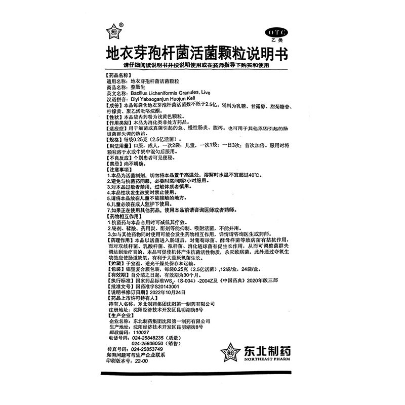 📚 整肠生 地衣芽孢杆菌活菌颗粒24袋细菌感染急慢性肠炎腹泻拉肚子W