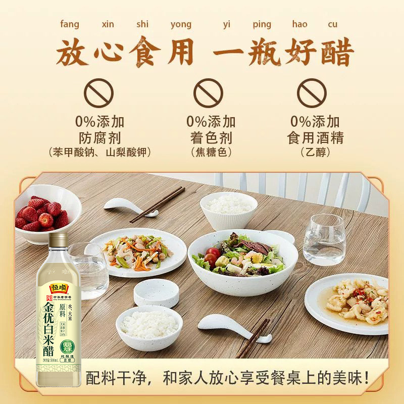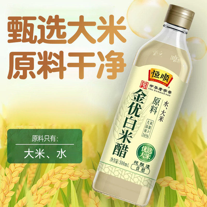 📚 恒顺金优零添加白米醋500ml*2瓶酿造白醋蘸料醋炒菜凉面调料凉拌