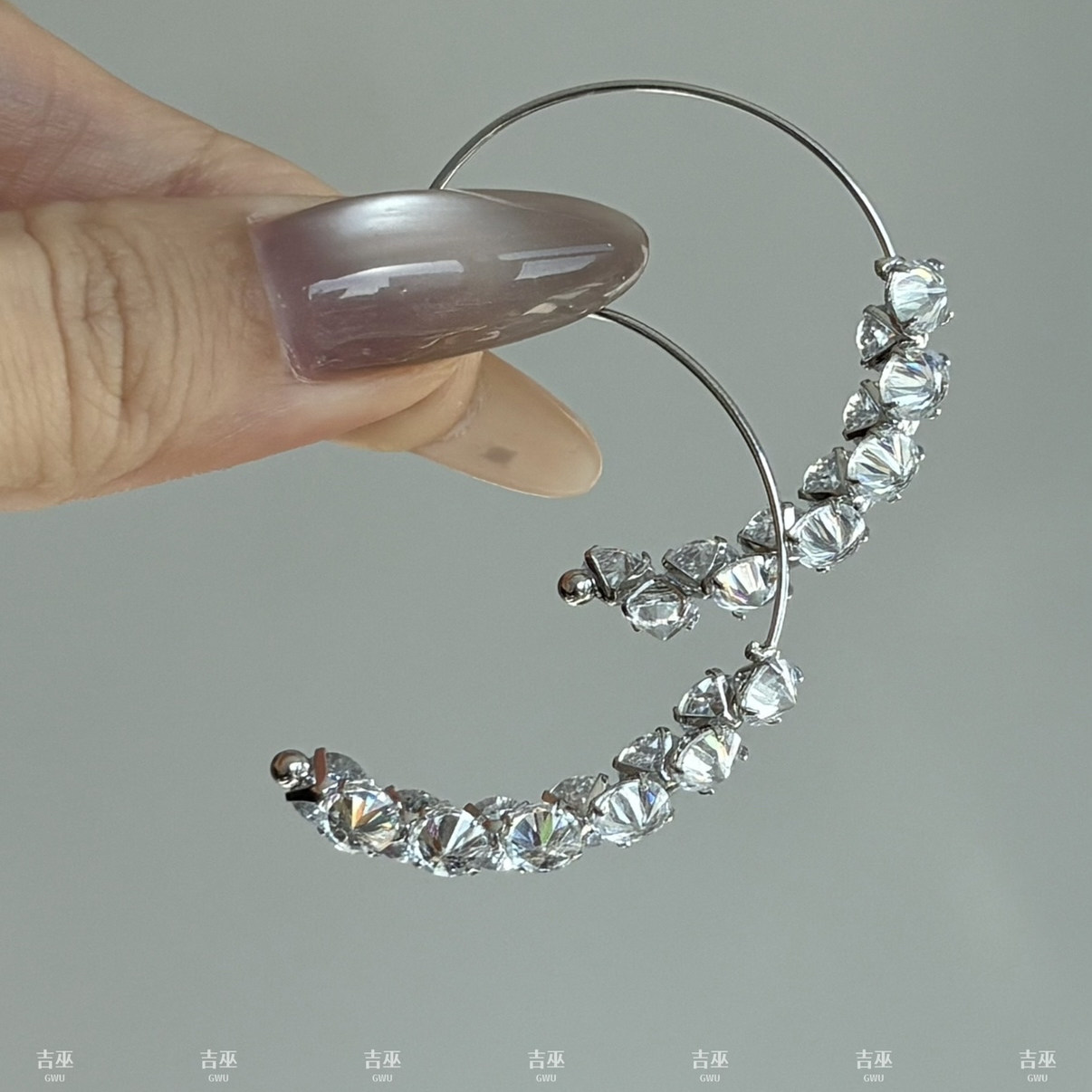 📚 下弦月|Gwu闪钻锆石C形大耳圈耳环轻奢高级感耳钉气质百搭耳饰