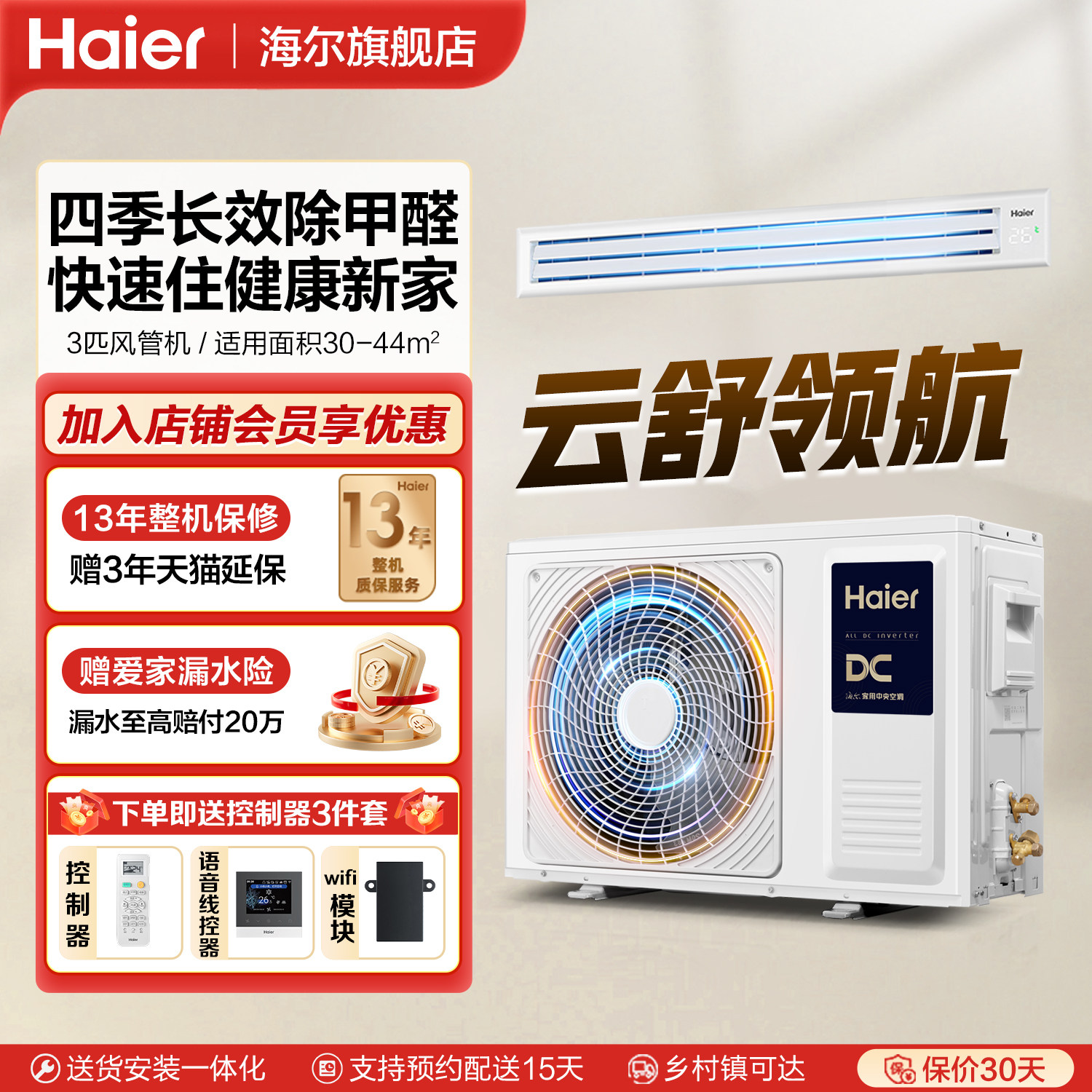 📚 海尔云舒领航 3匹中央空调风管机智能AI除甲醛家用别墅客厅一拖一