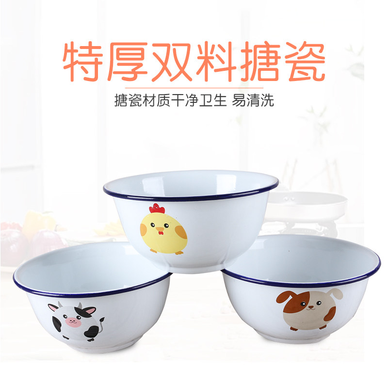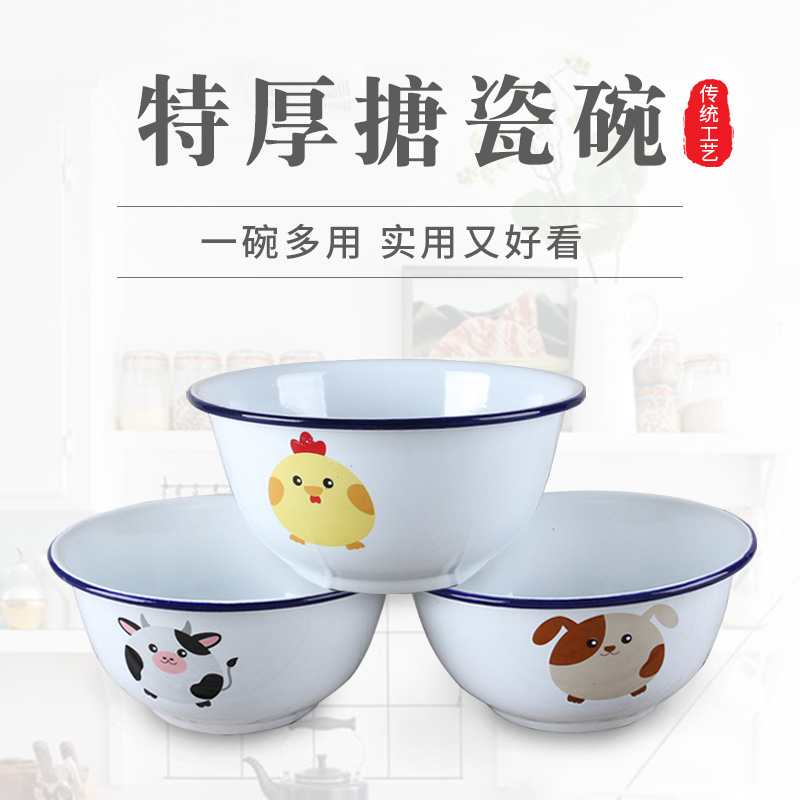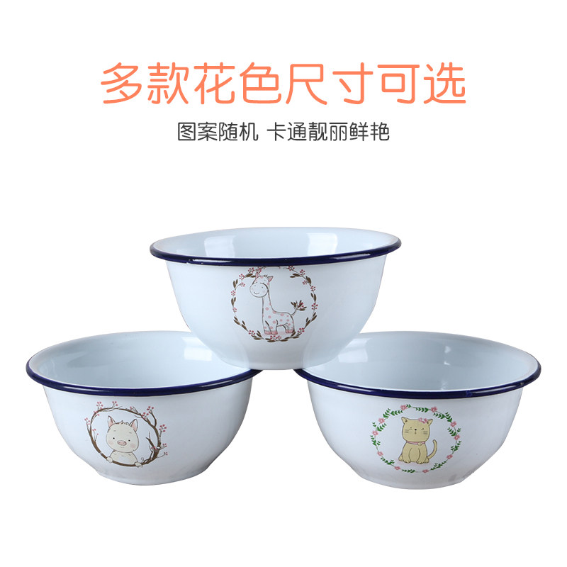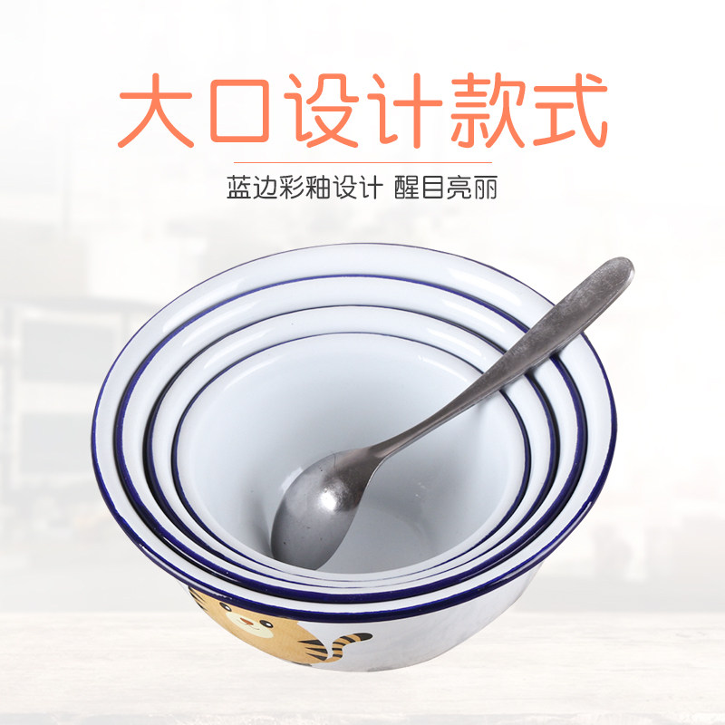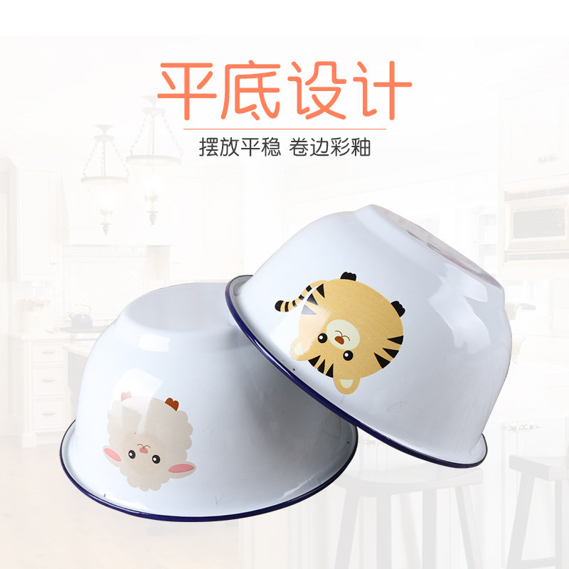 📚 珐琅搪瓷碗带盖宝宝辅食碗泡面碗饭碗老式汤碗卡通铁大碗家用餐具