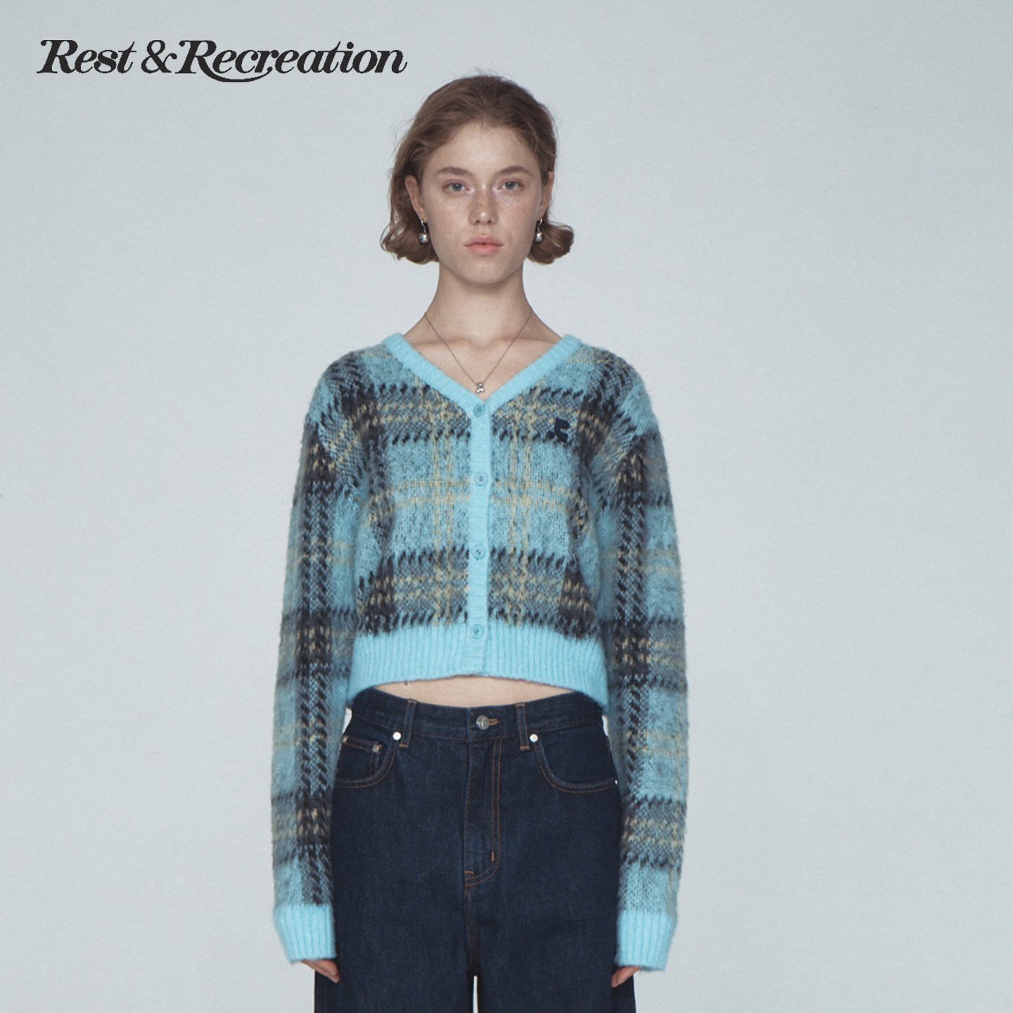 📚 RestandRecreation官方2026春季新款RR马海毛格纹短款V领针织开衫