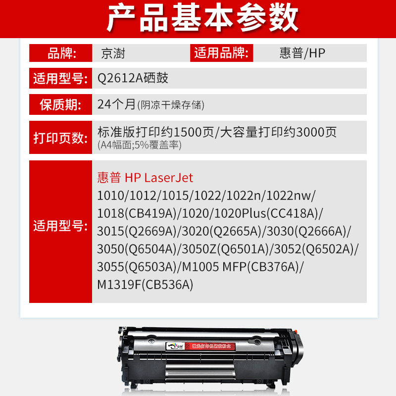 📚 京澍适用惠普laserjetm1005mfp硒鼓m1005激光打印机硒鼓黑白1005n 1005c惠普专用CB376A墨盒碳粉2612 12A晒鼓