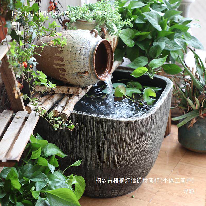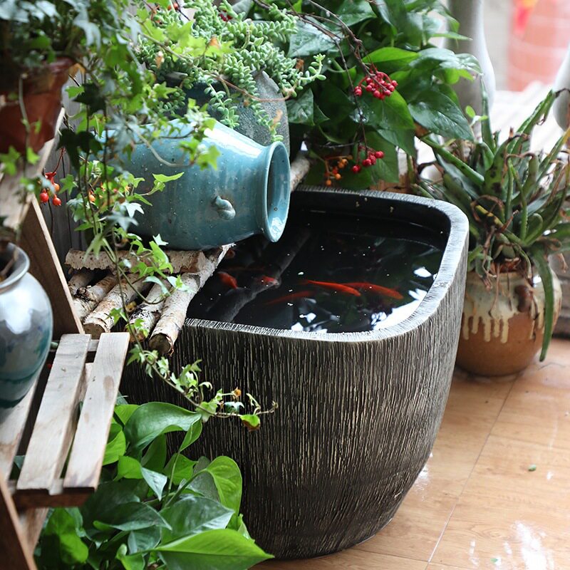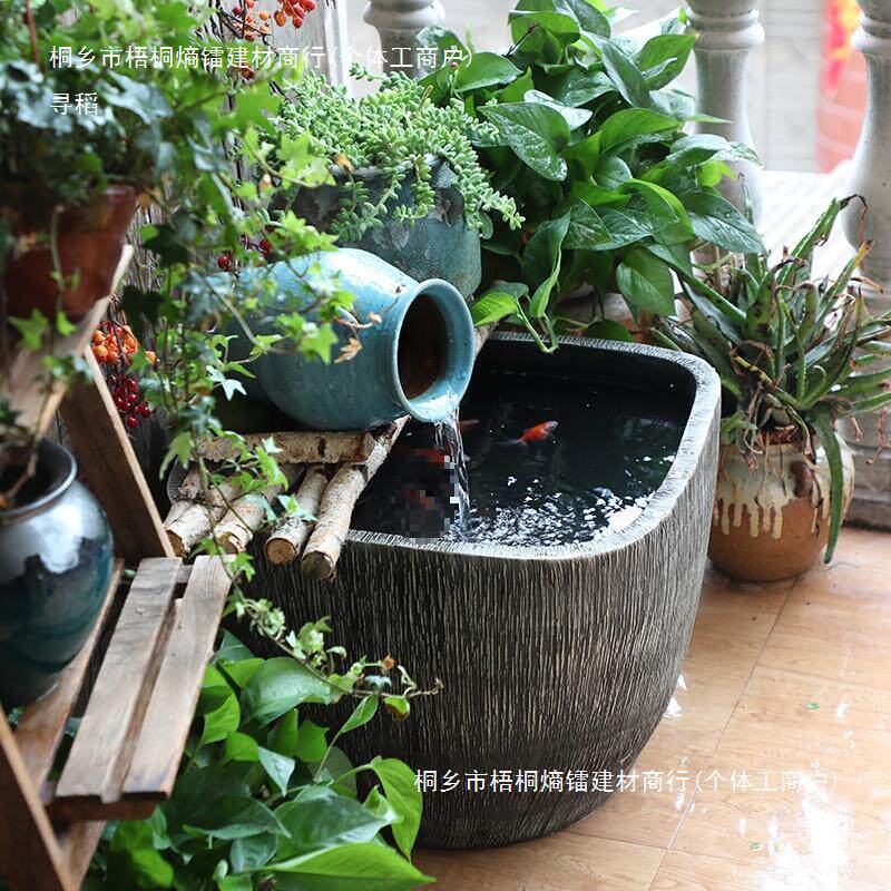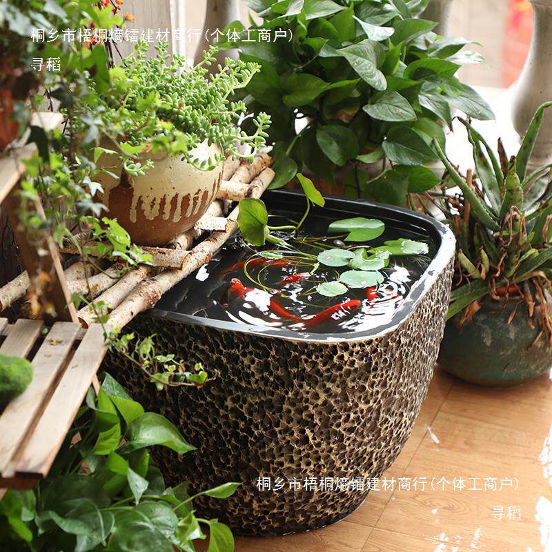 📚 仿石鱼缸大号陶瓷鱼缸客厅落地摆件家用造景荷花缸方形养鱼盆粗陶