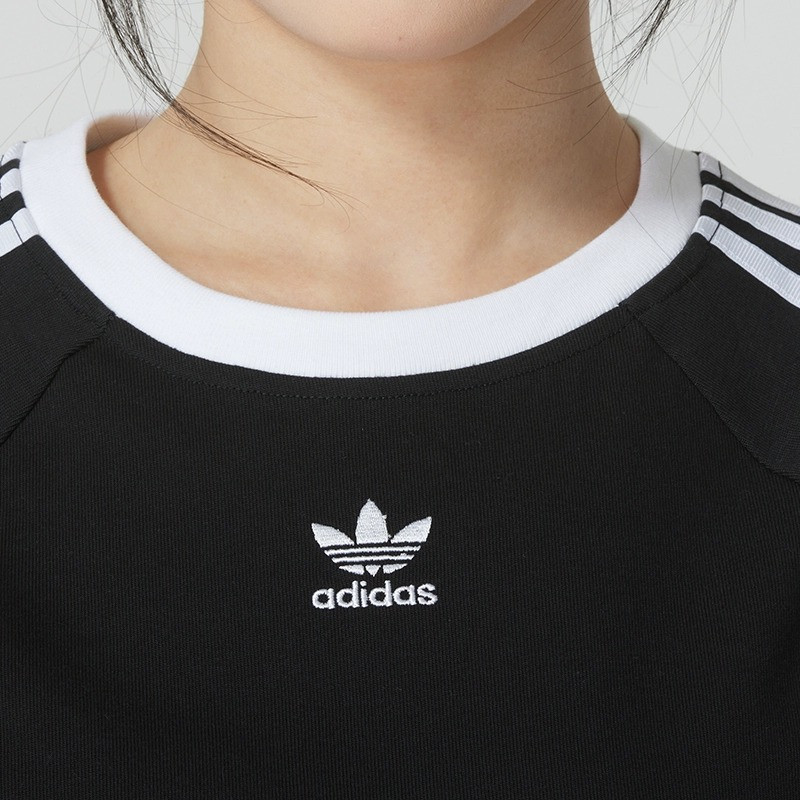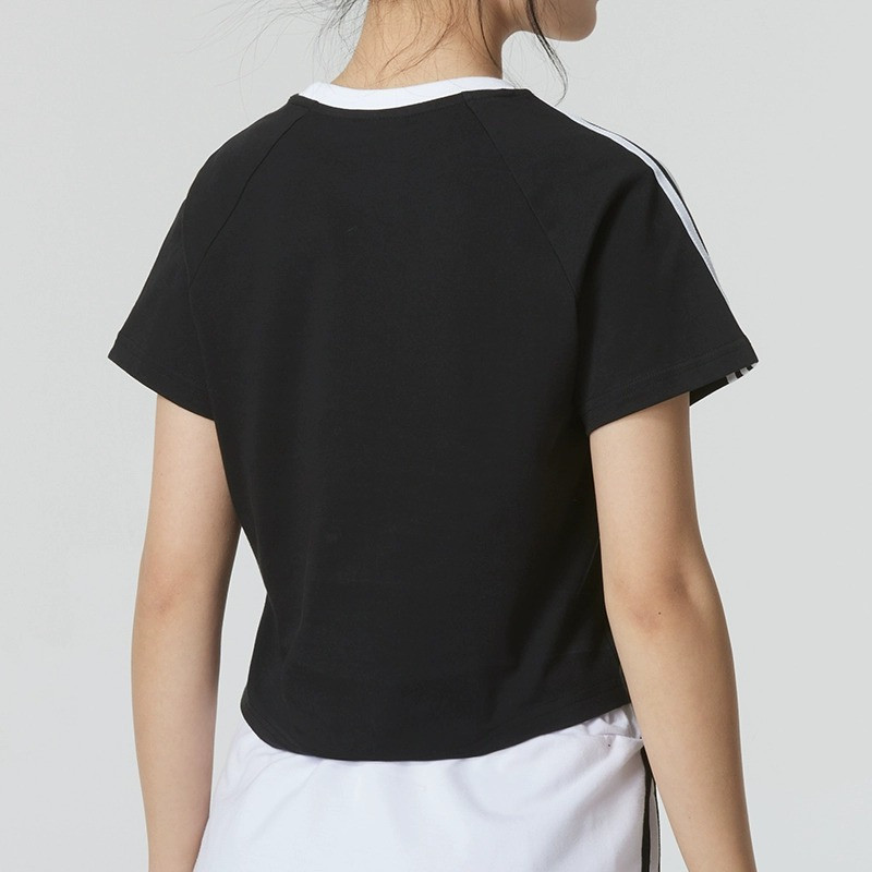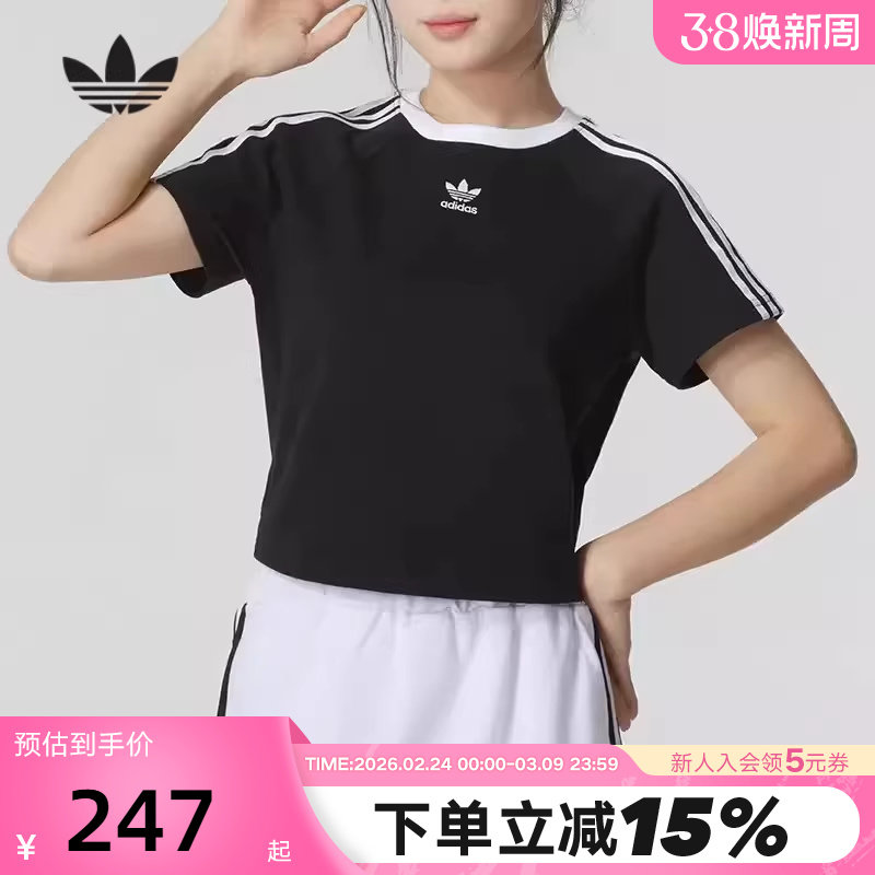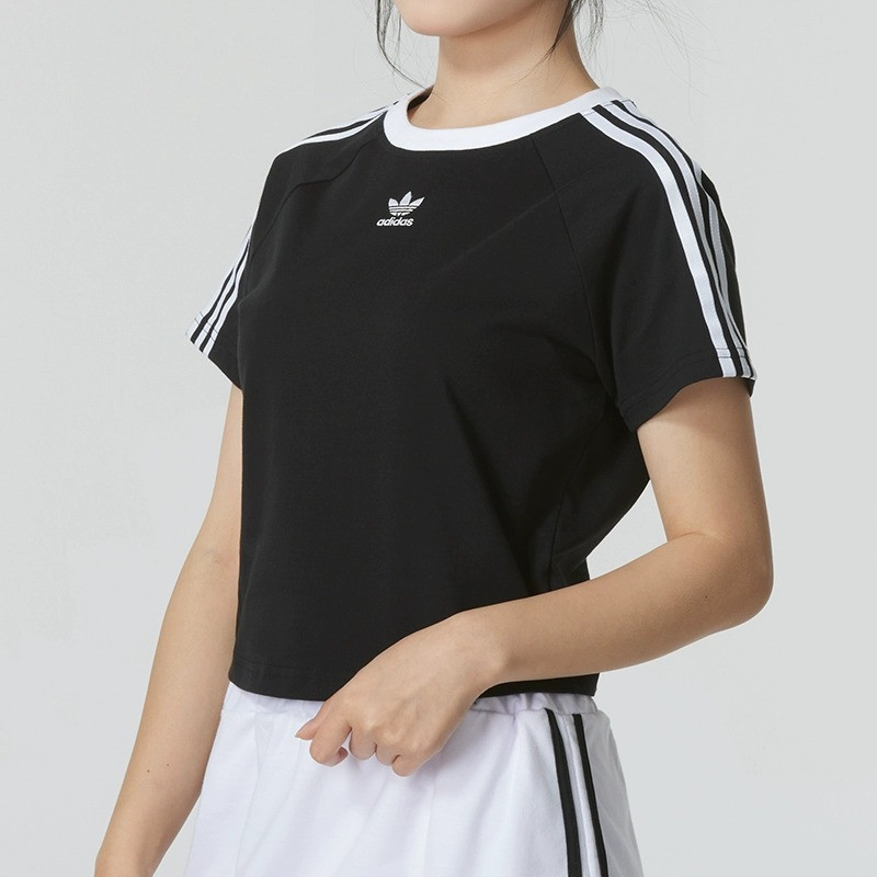 📚 adidas阿迪达斯三叶草短袖T恤女夏三条纹短款高腰薄款上衣 JC8703