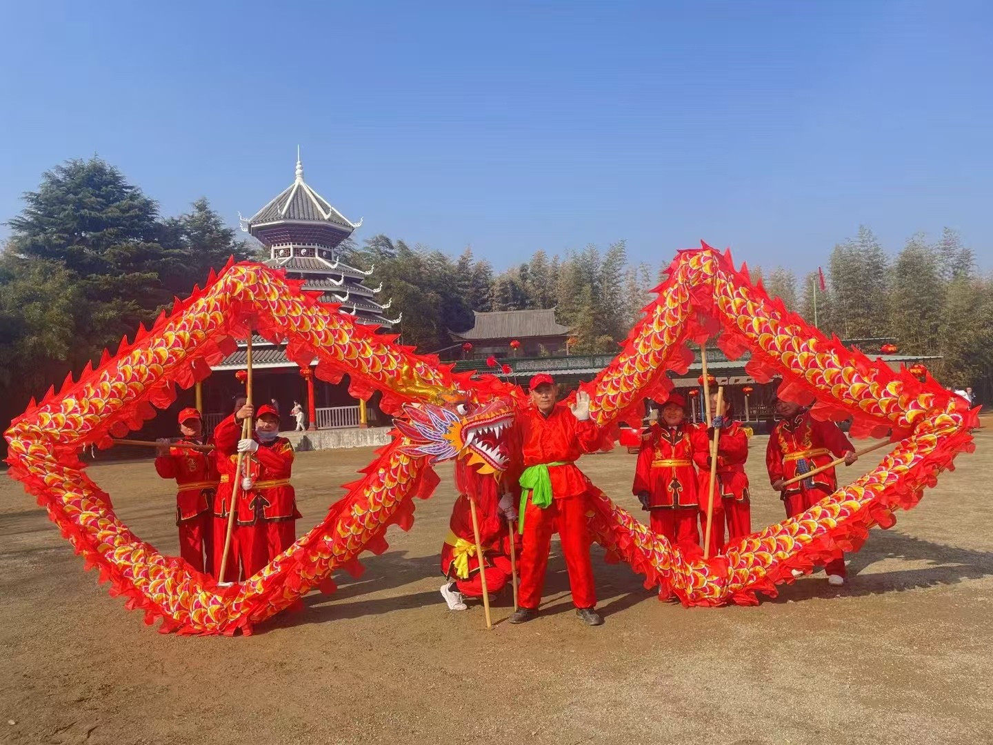 📚 舞龙舞狮道具春节活动表演成人龙灯绸布龙学生运动会舞台用九节龙