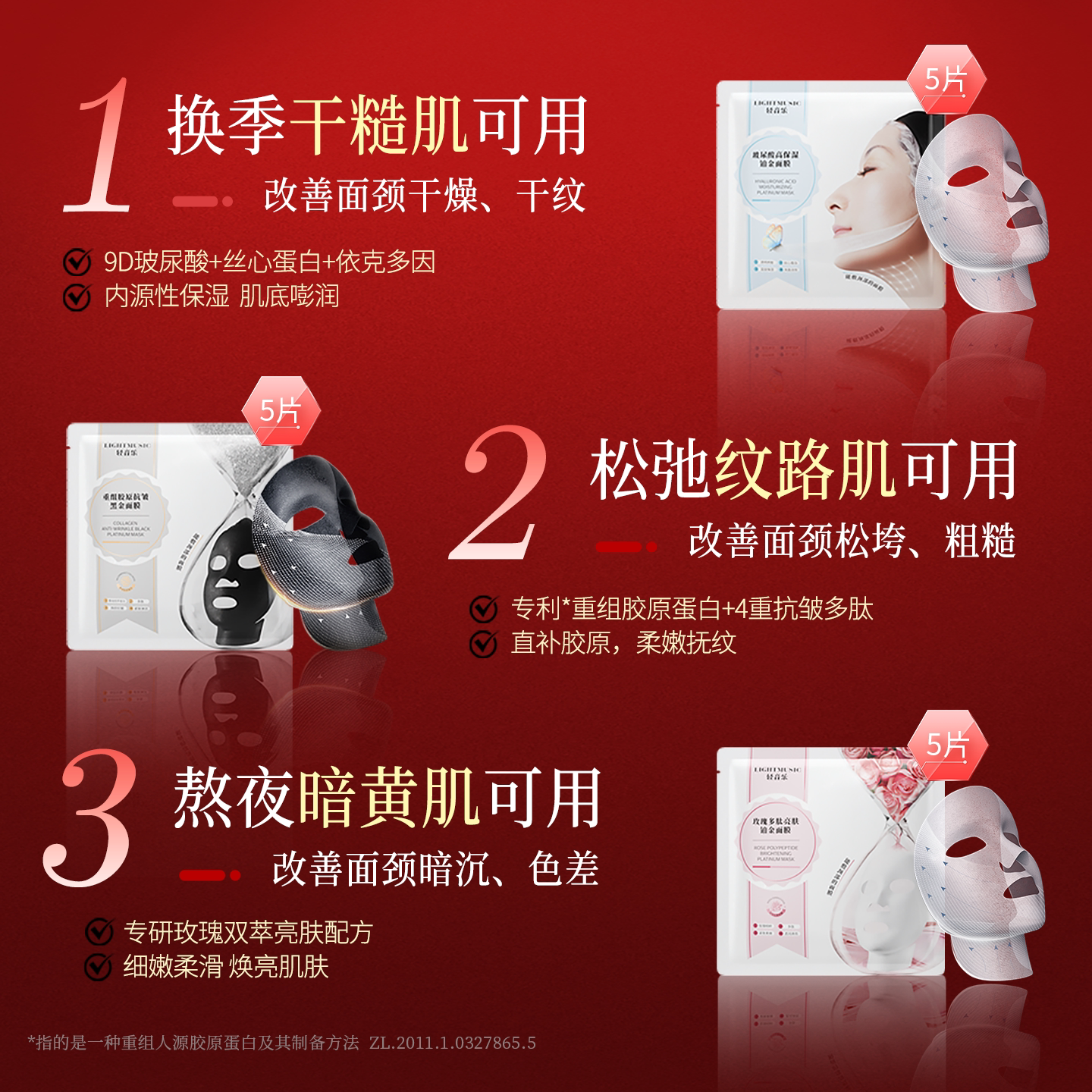 📚 【周年庆】轻音乐铂金面颈膜组合套装15片保湿提亮淡纹官方旗舰