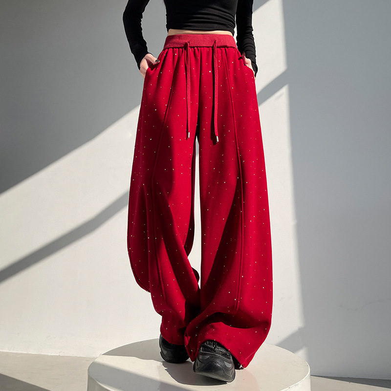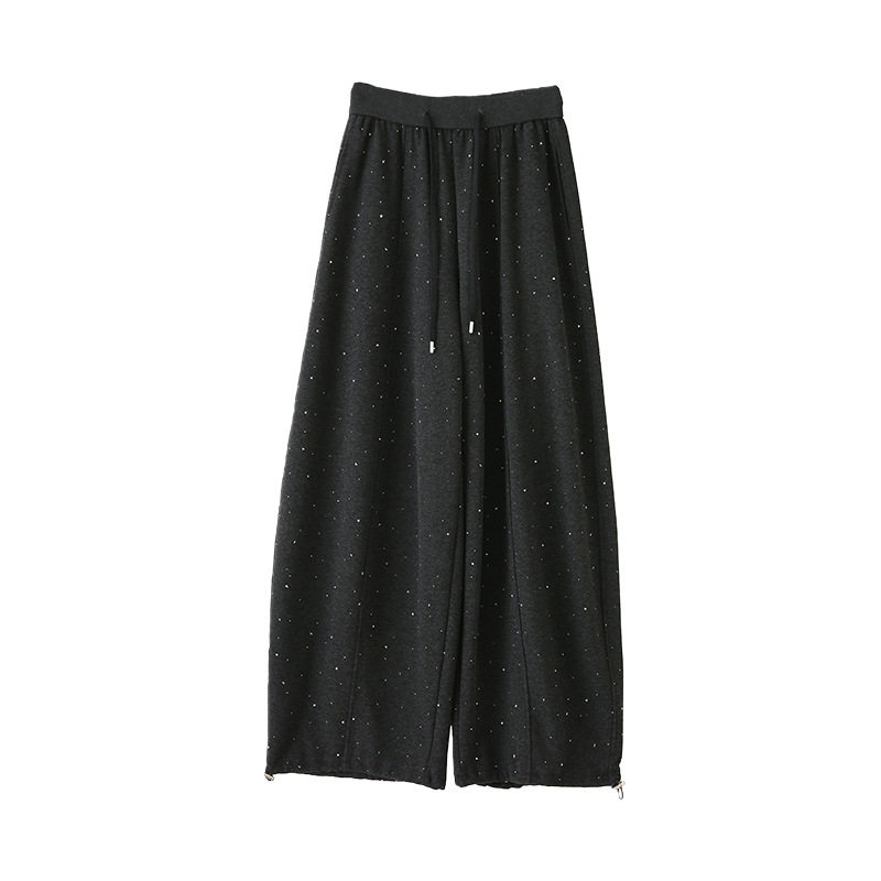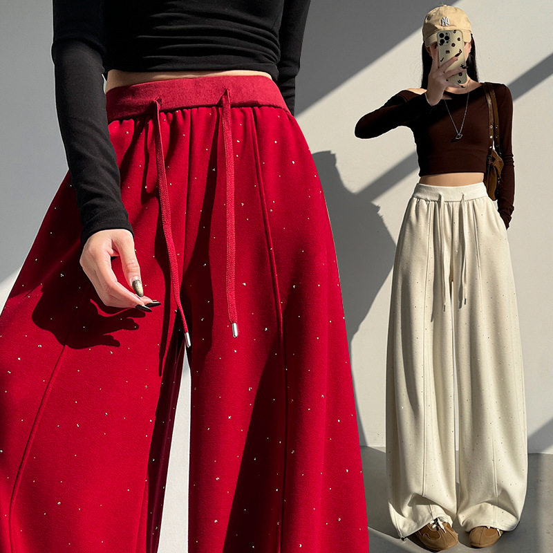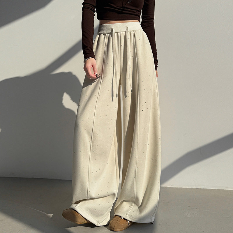 📚 春季爆款满天星烫钻裤子女2026新款垂感显瘦弯刀裤小个子阔腿裤潮
