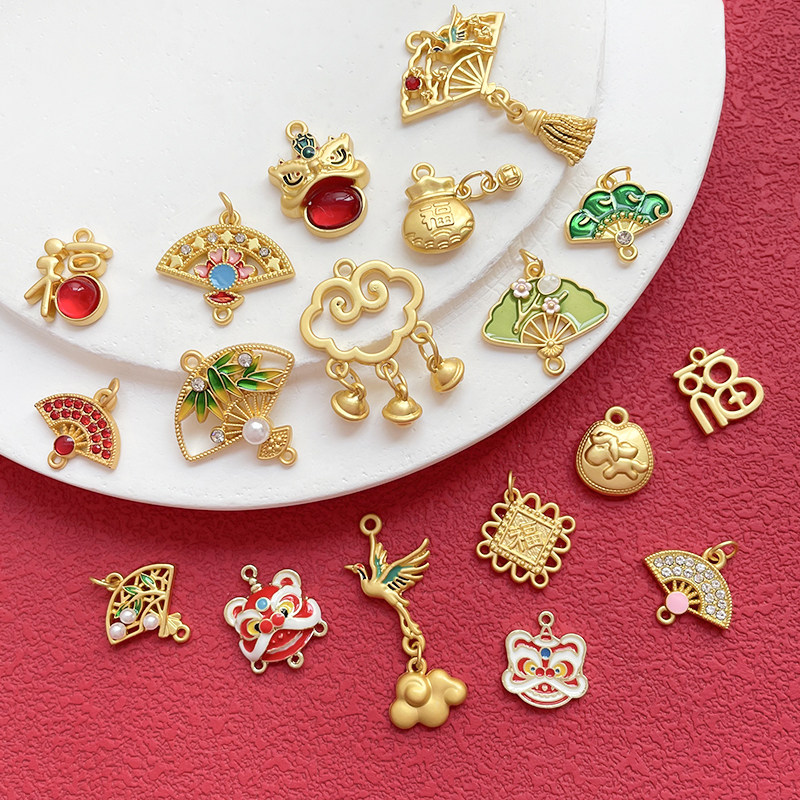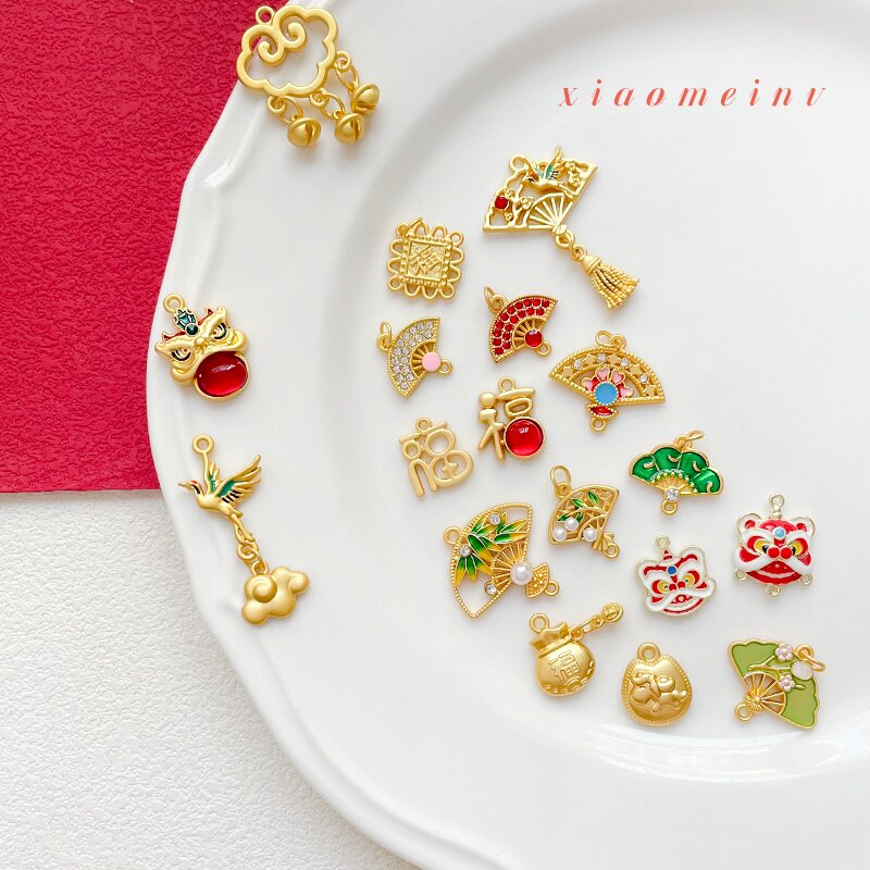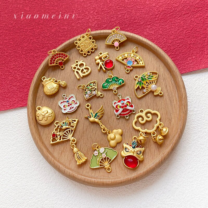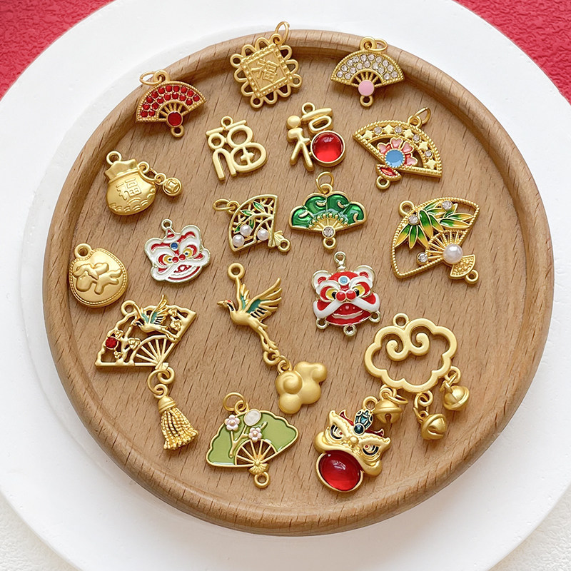📚 国风合金保色新年喜庆福字镂空扇子链条diy手工串珠吊坠饰品配件