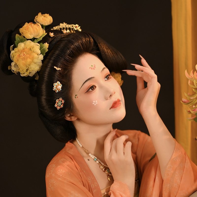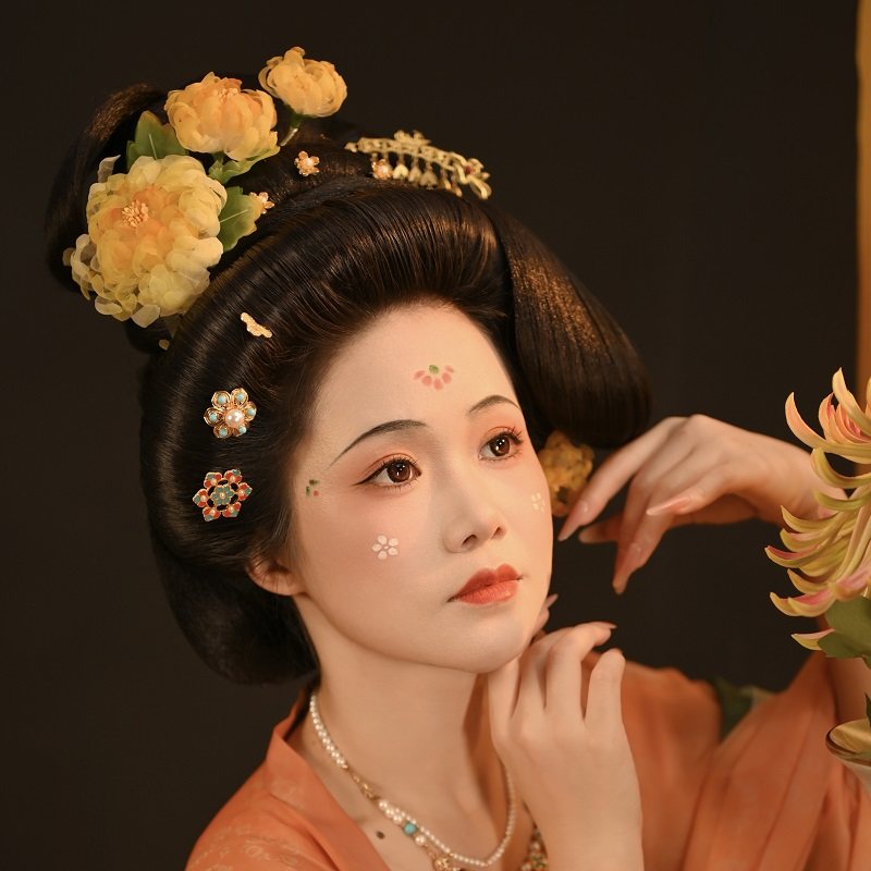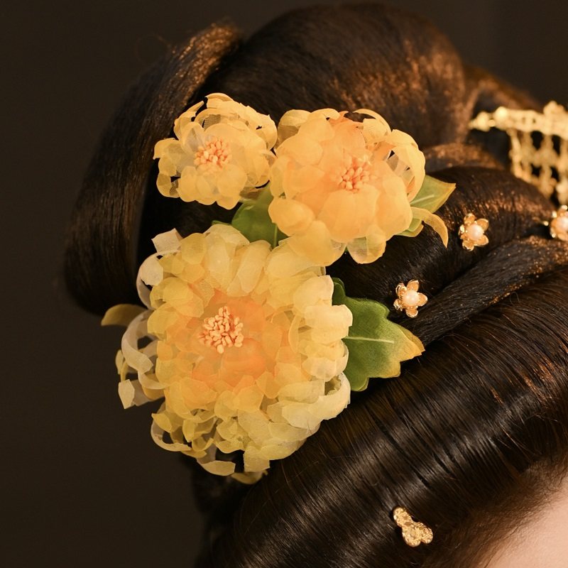 📚 玲珑阁原创真丝烫花发饰渐变黄色秋菊唐风十二花神菊花汉服头饰女