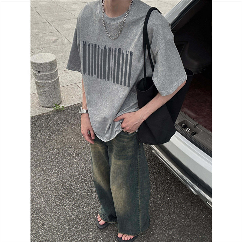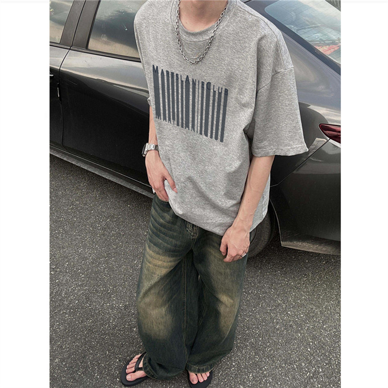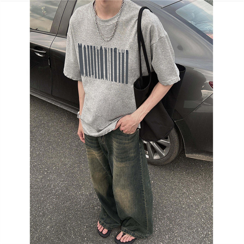 📚 重磅纯棉美式复古短袖t恤男夏季宽松设计感小众oversize潮牌上衣