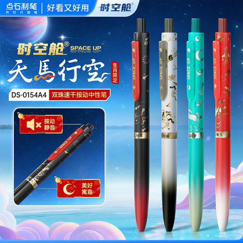 📚 【生肖限定】点石时空舱天马行空马年限定双珠速干中性笔按动静音黑科技中小学生刷题考试黑笔0154A4点石制笔