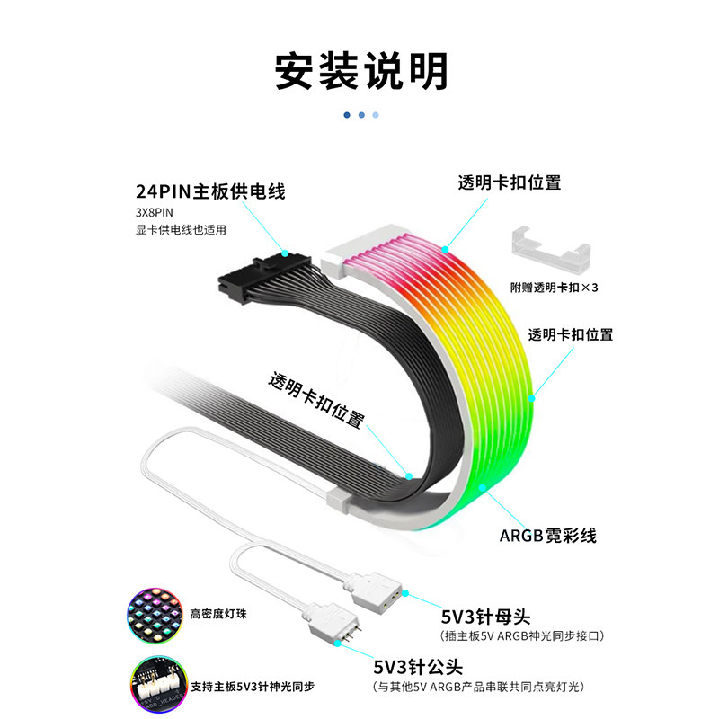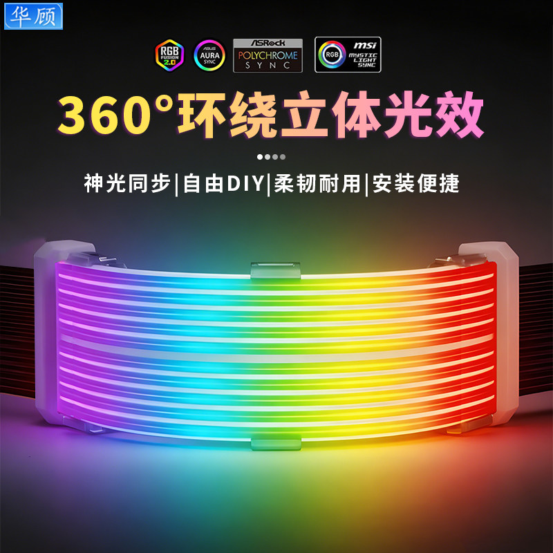 📚 华顾显卡霓虹线ARGB灯条8P24Pin电脑机箱饰rgb灯板霓彩神光同步线