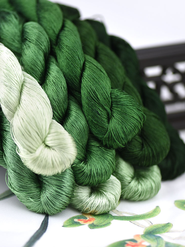 📚 98号6A免劈线真丝手工绣线缠花绒花diy苏绣桑蚕丝绣花绿色森林绿