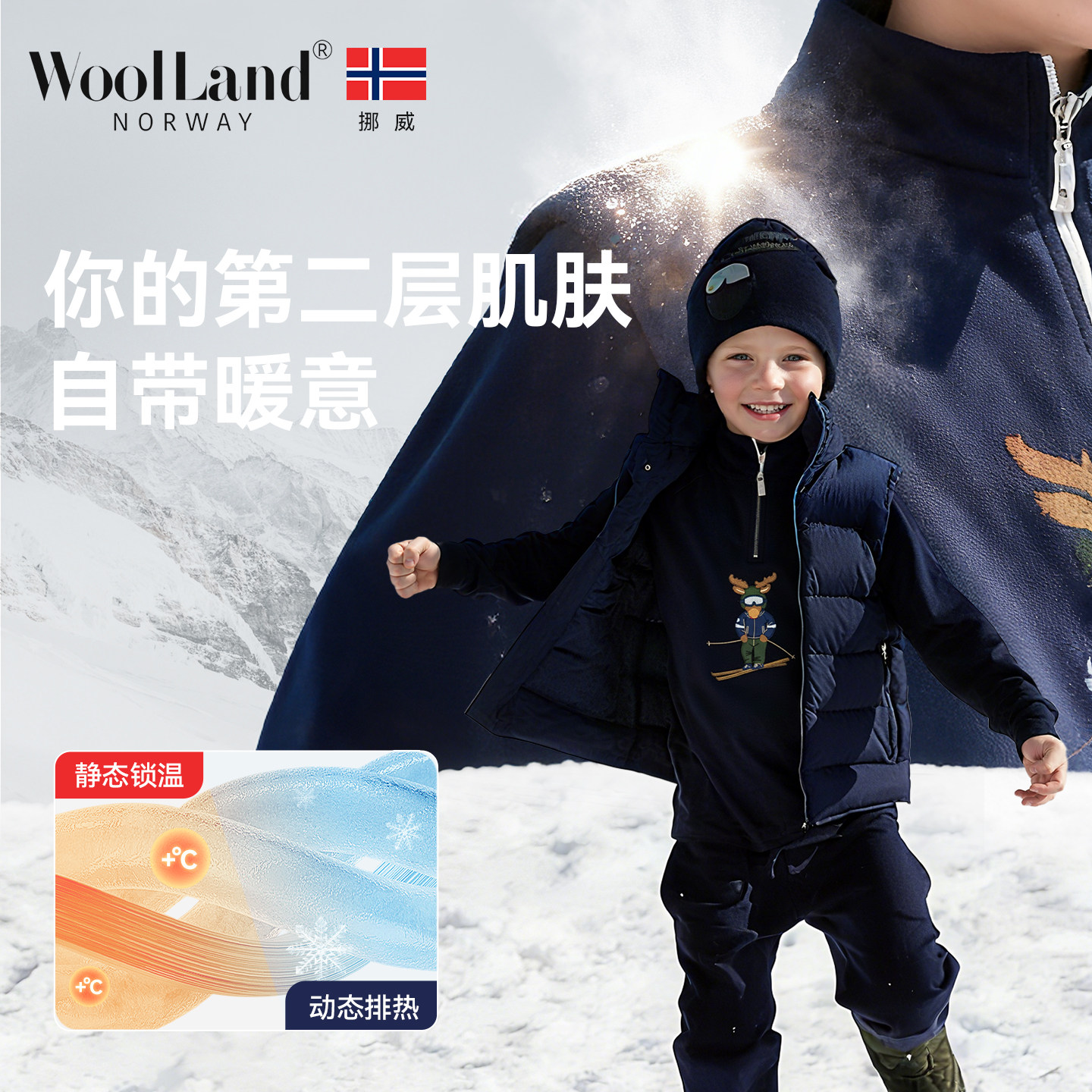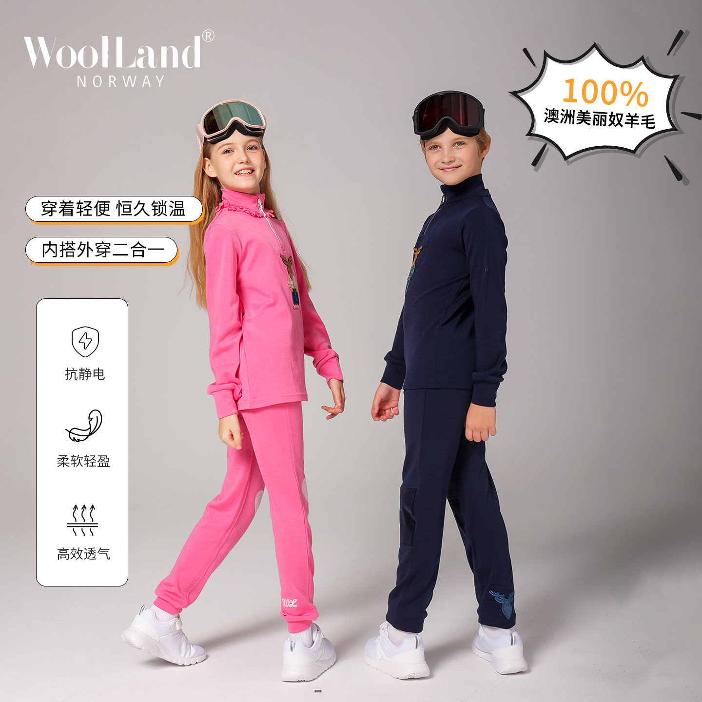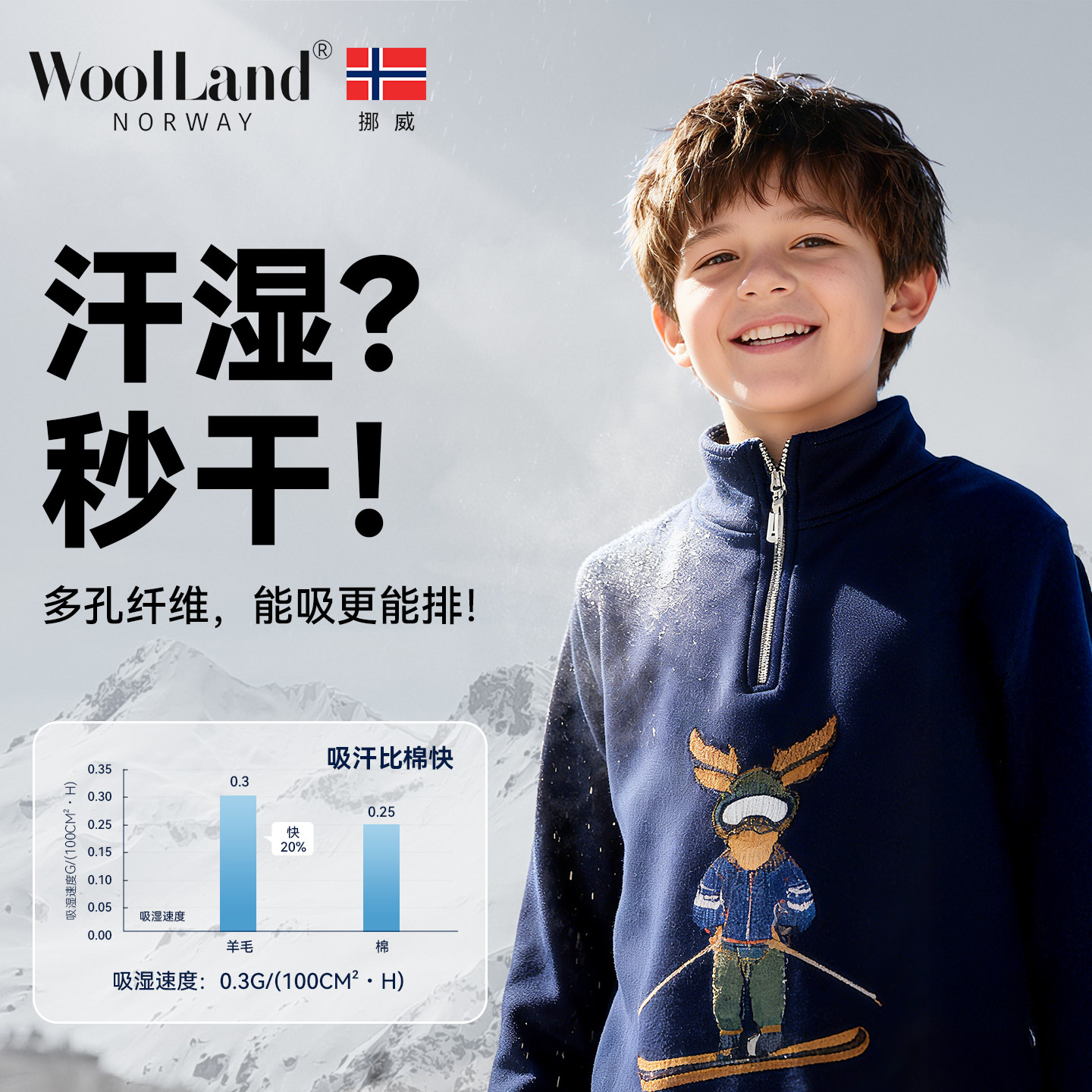 📚 挪威WoolLand美利奴羊毛滑雪速干衣儿童户外运动内衣透气排汗保暖