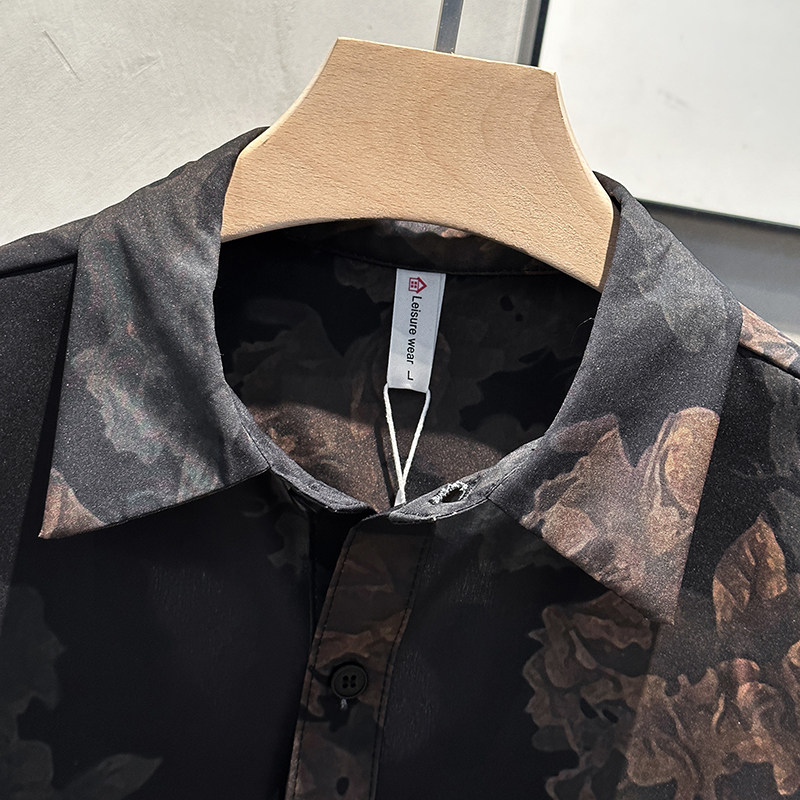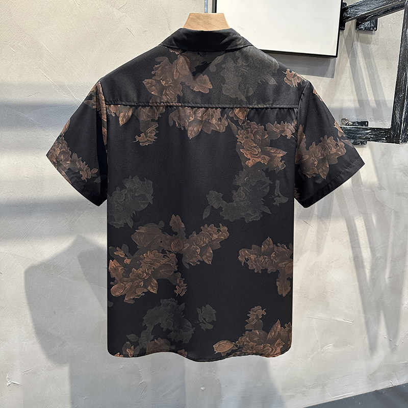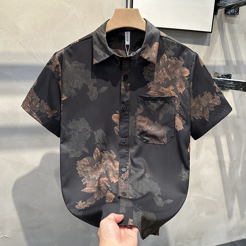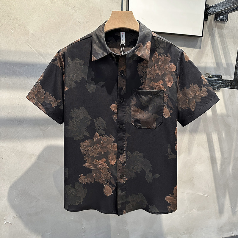 📚 美式复合潮牌短袖男生花衬衫新中式宽松高级感痞帅风夏威夷衬衣男