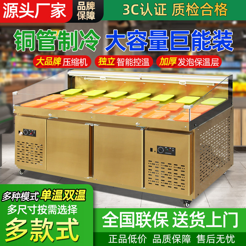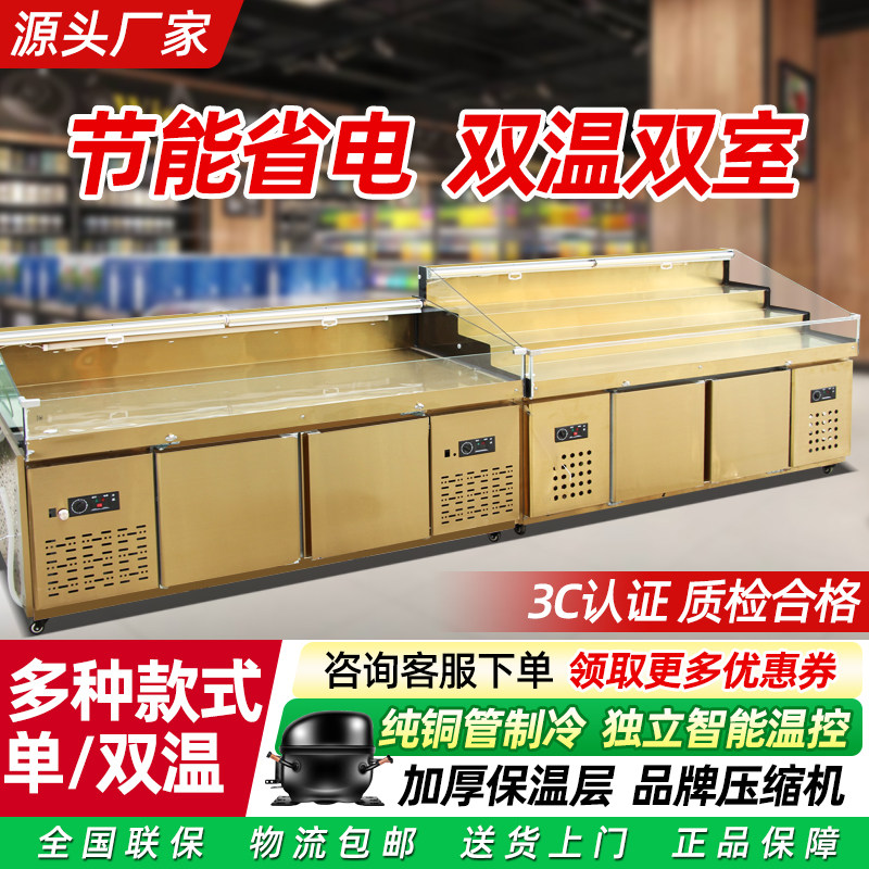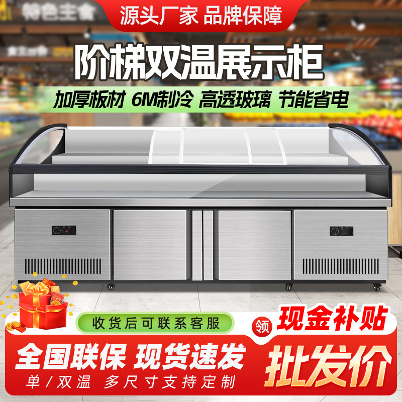 📚 三阶梯式冷藏冷冻展示柜海鲜保鲜冰台钛金鲜切牛肉明档阶梯点菜柜