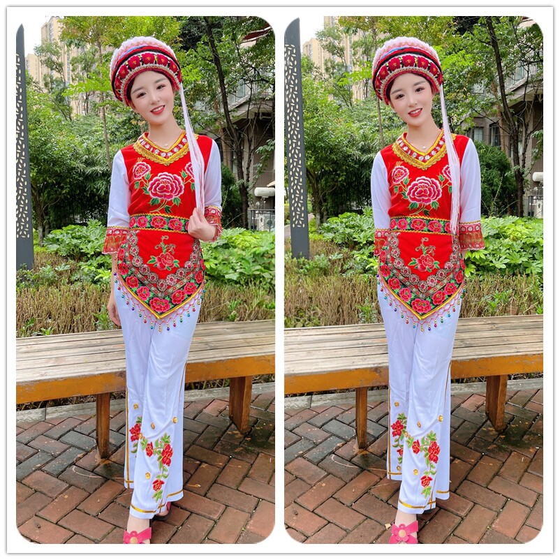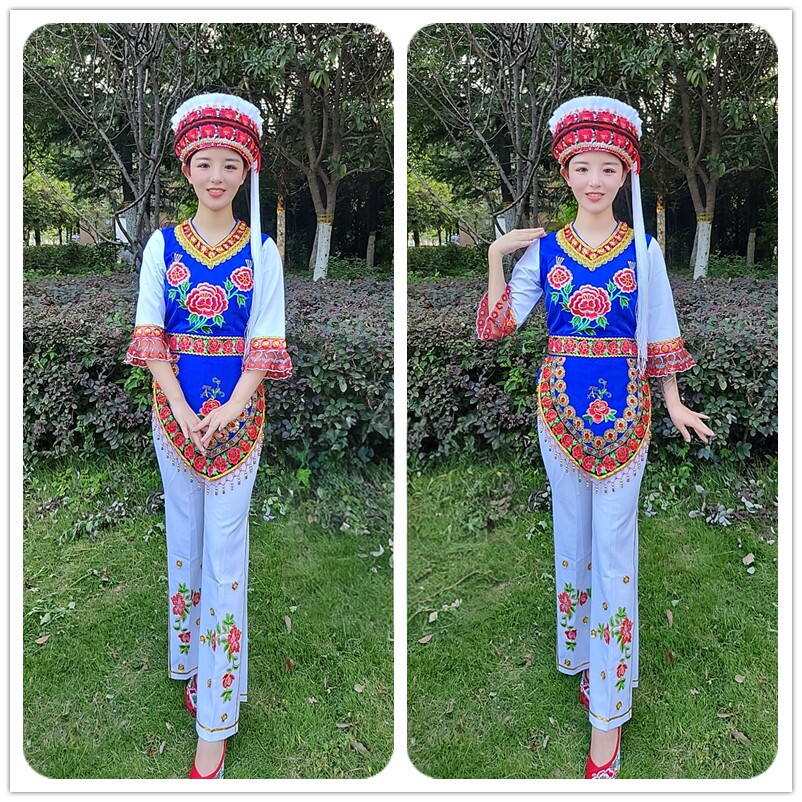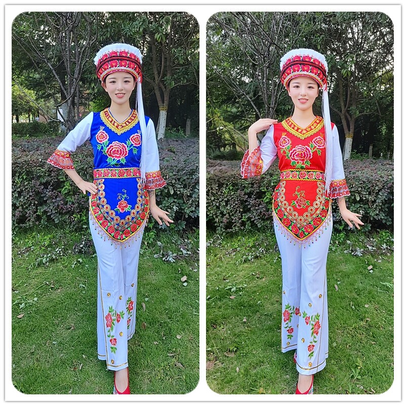 📚 精品绣花白族女装云南大理金花服饰少数民族服装红色宝蓝色套装
