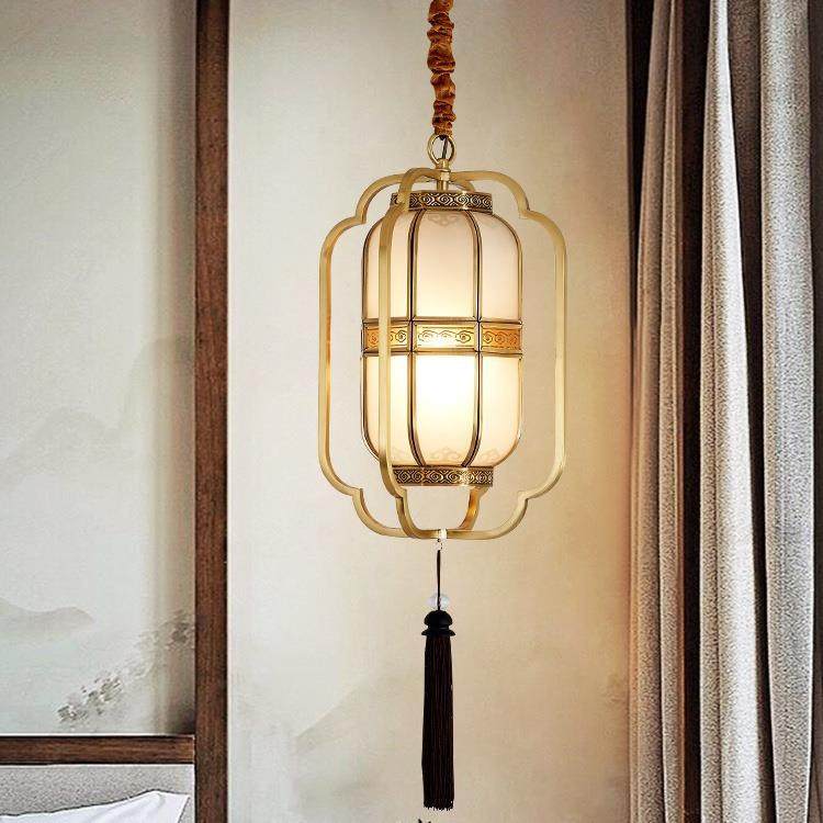 📚 明镜致远 新中式全铜卧室床头小吊灯 禅意中国风过道阳台书房灯具