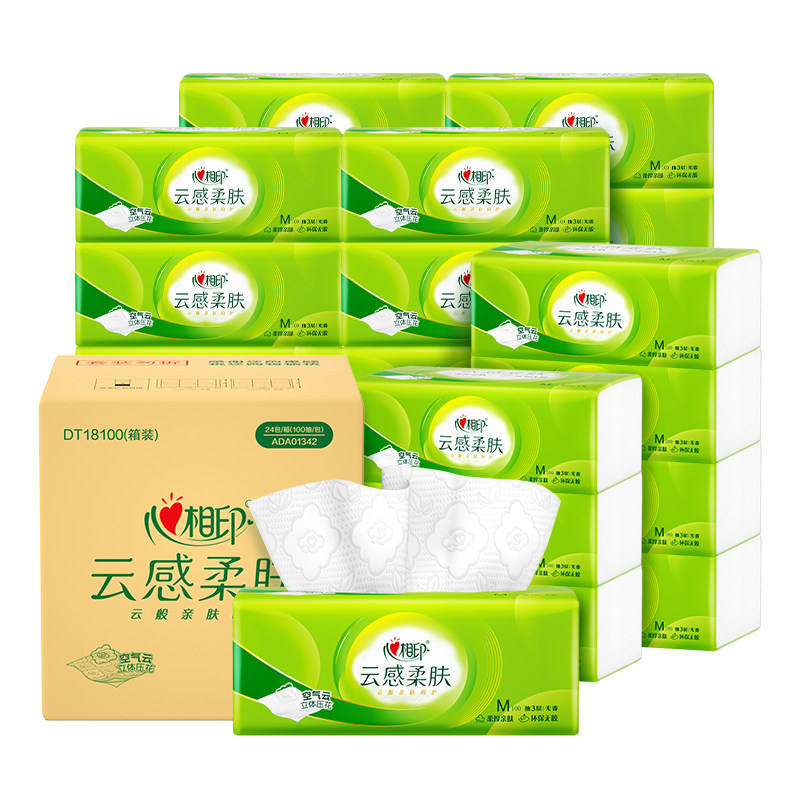 📚 心相印茶语精选抽纸M码整箱24包餐巾纸家用整箱大包实惠装DT9100