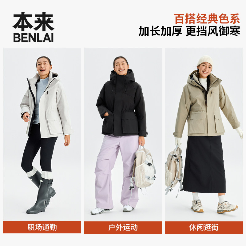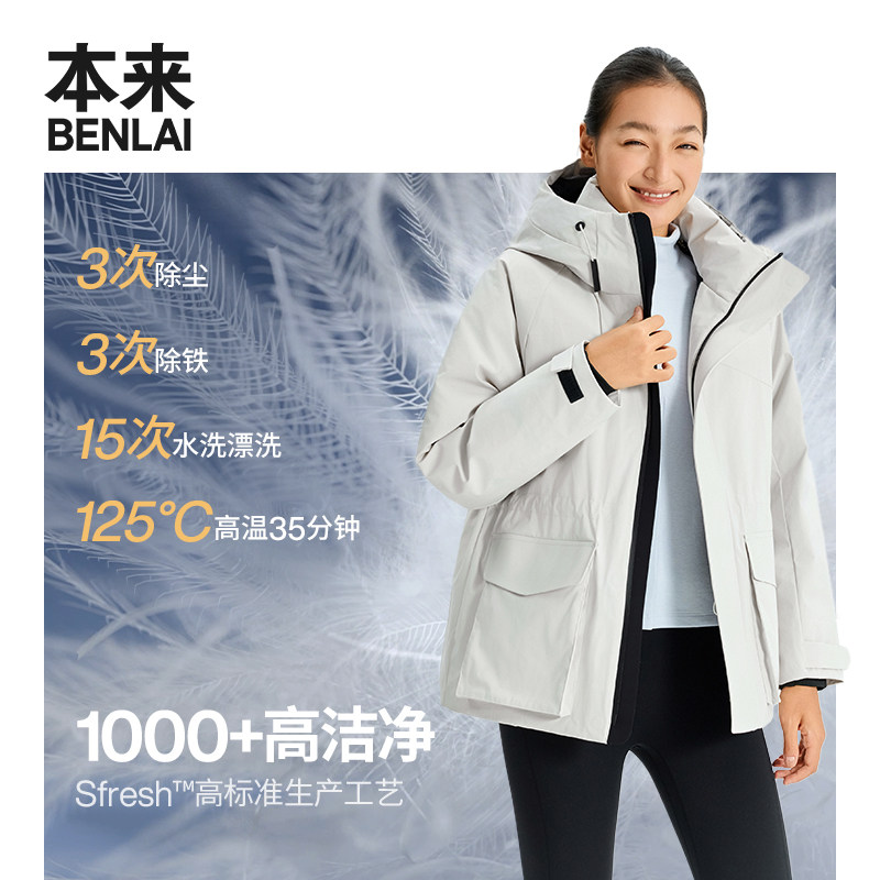📚 本来BENLAI女士防泼水防风90绒加厚工装羽绒服25冬新款BNM150016
