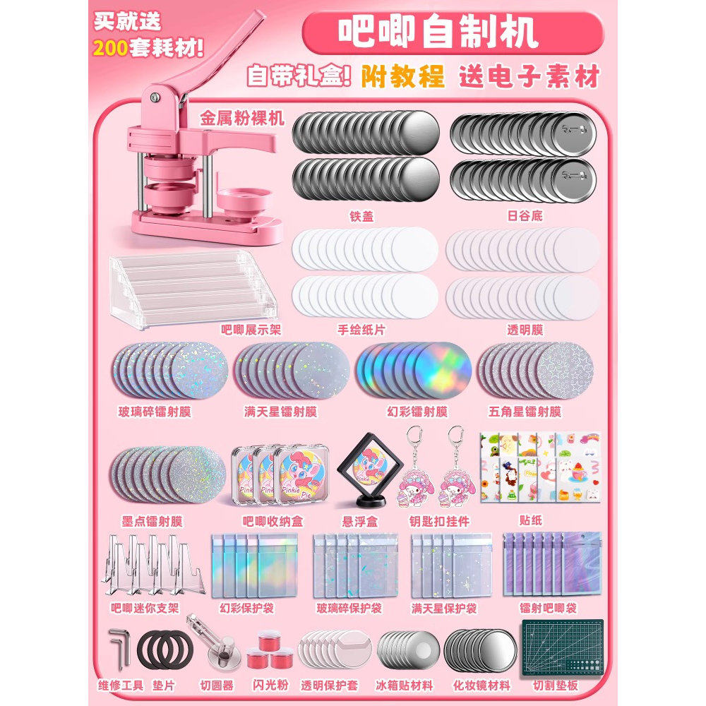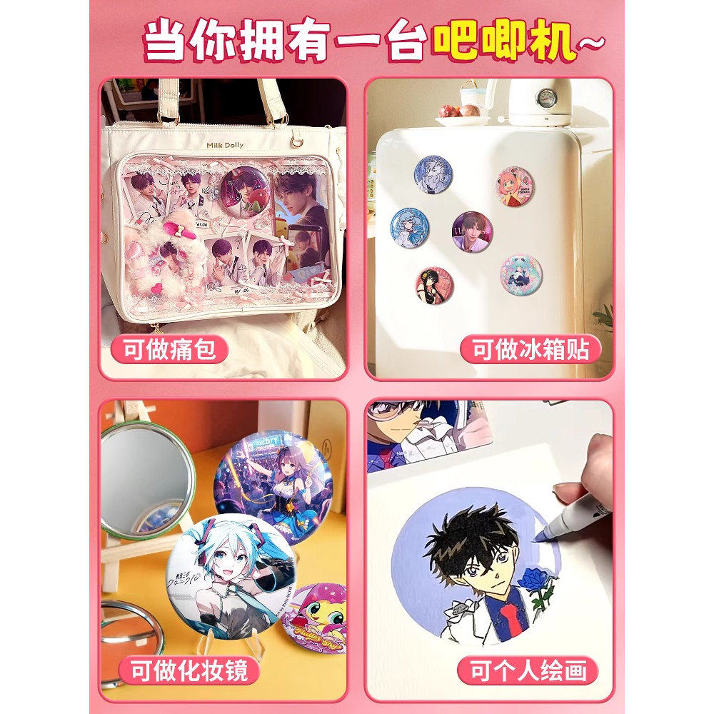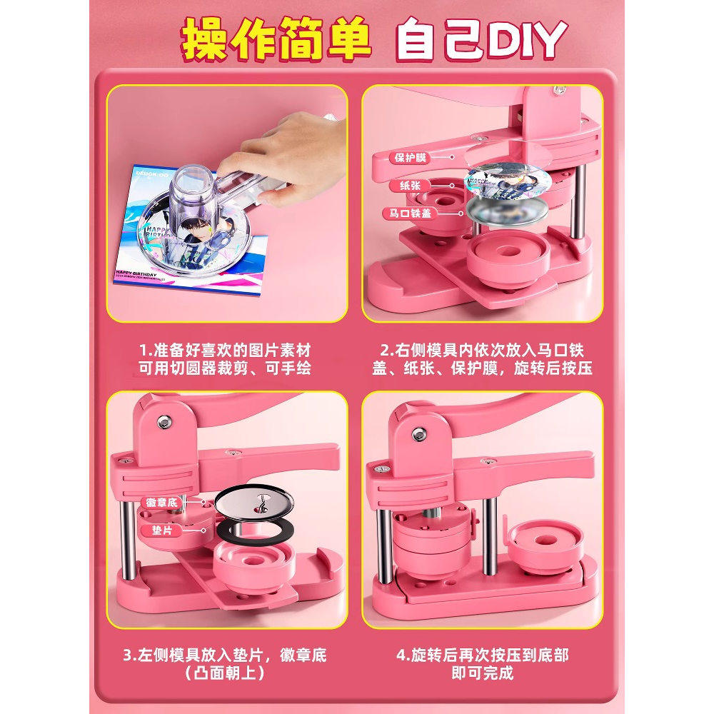 📚 吧唧制作机徽章机谷子自制机胸章机儿童生日礼物手工玩具周边美术勋章巴基啪叽工具套装制做吧唧的机器材料58
