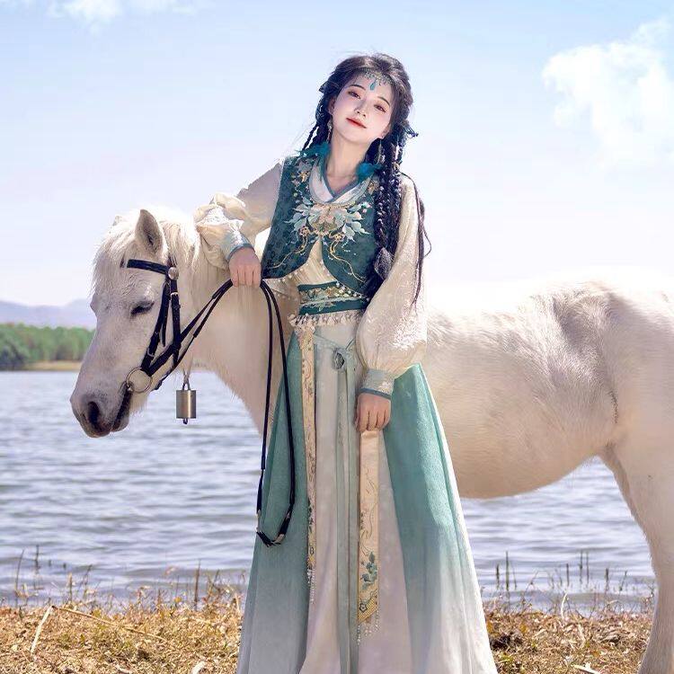 📚 新款汉服少女元素一片式十破裙套装钟灵毓秀绿野潇湘破裙异域绮梦
