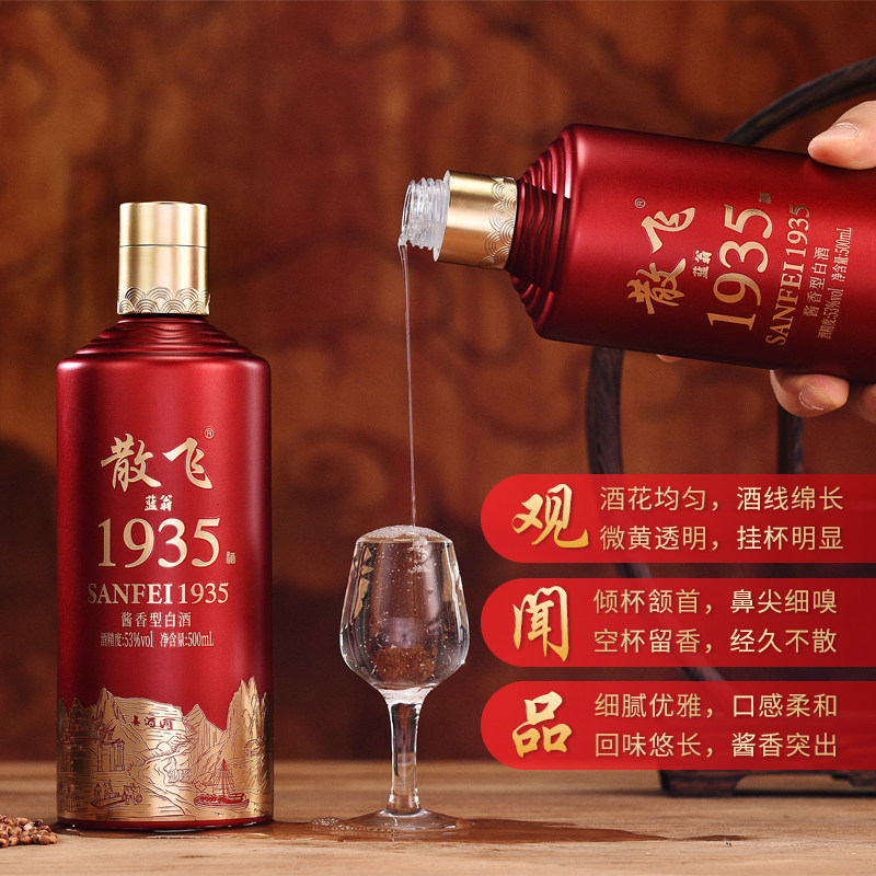 📚 蓝翁散飞酒贵州酱香型白酒53度纯粮食高粱酒500ml*6瓶整箱