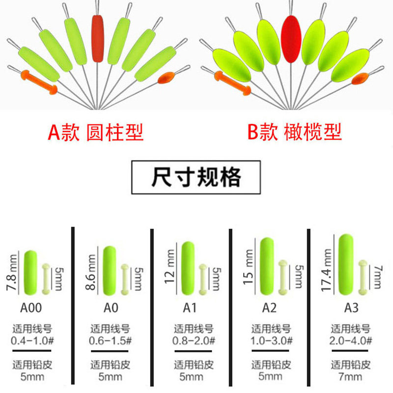 📚 7+2七星漂豆套装流线型浮子带铅皮座溪流传统钓高灵敏浮漂圆柱形