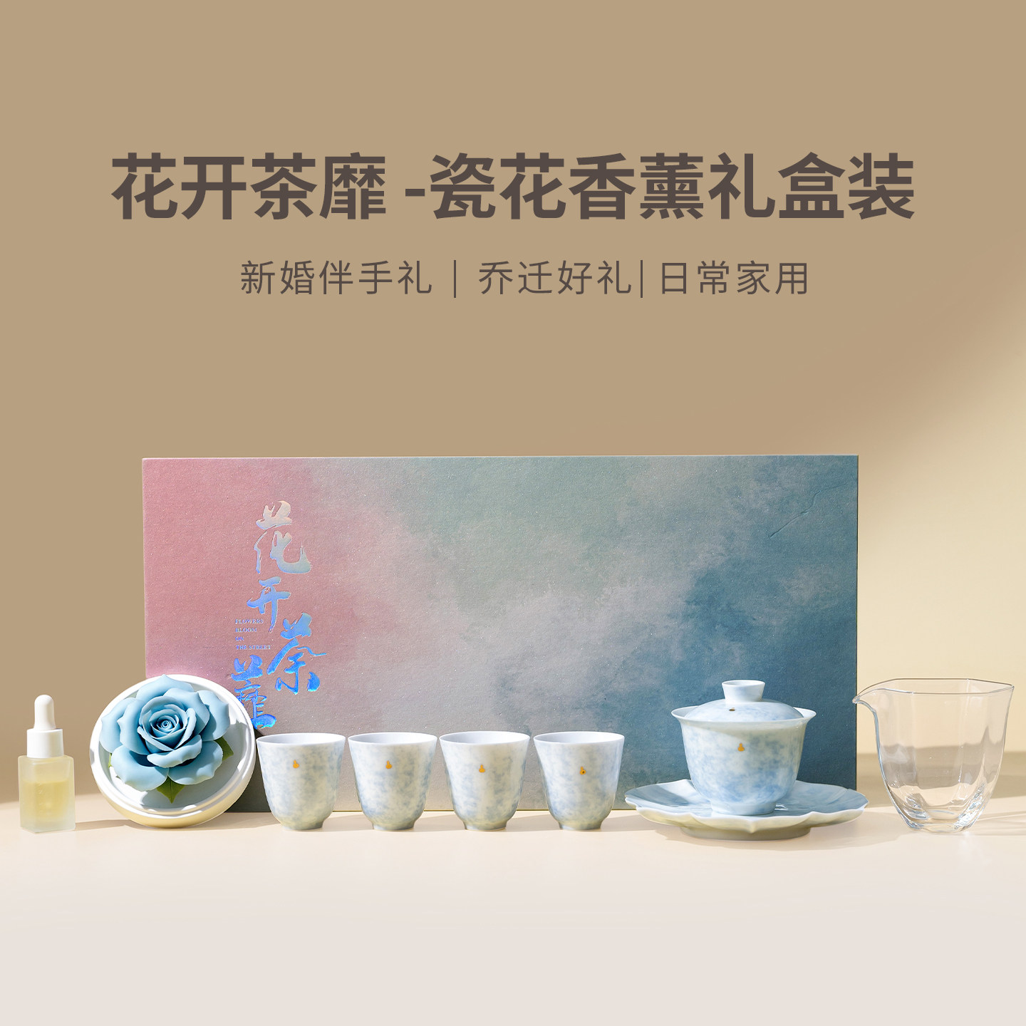 📚 玫瑰香薰|瓷花高档盖碗茶具礼盒马年新年送女生生日情人节礼物