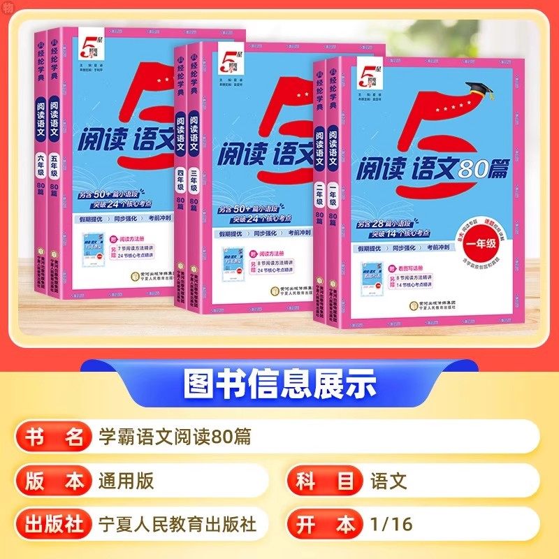 📚 2026新版五星学霸阅读80篇语文一年级二年级三年级四五六年级全一册5星英语时文阅读100篇阅读理解专项训练书同步阅读真题每日一练